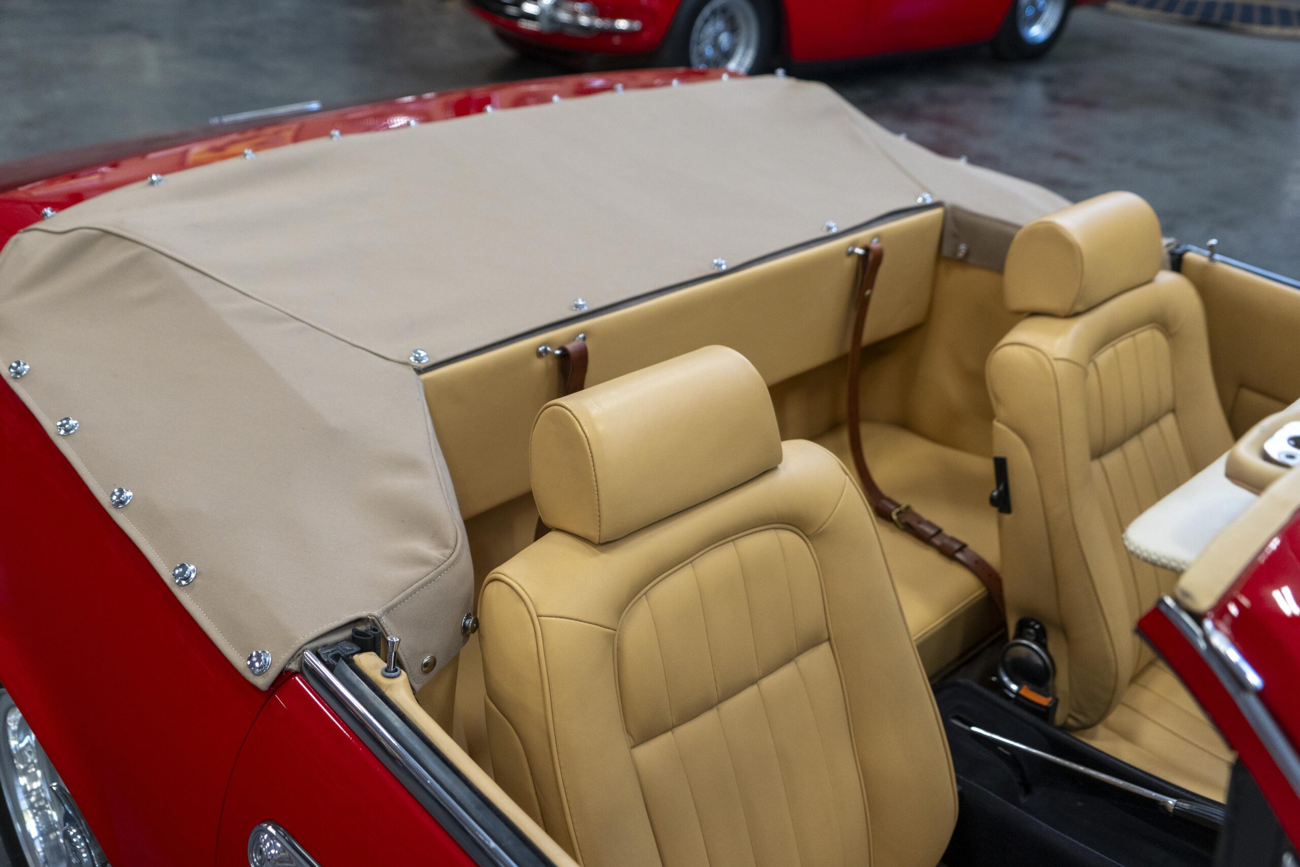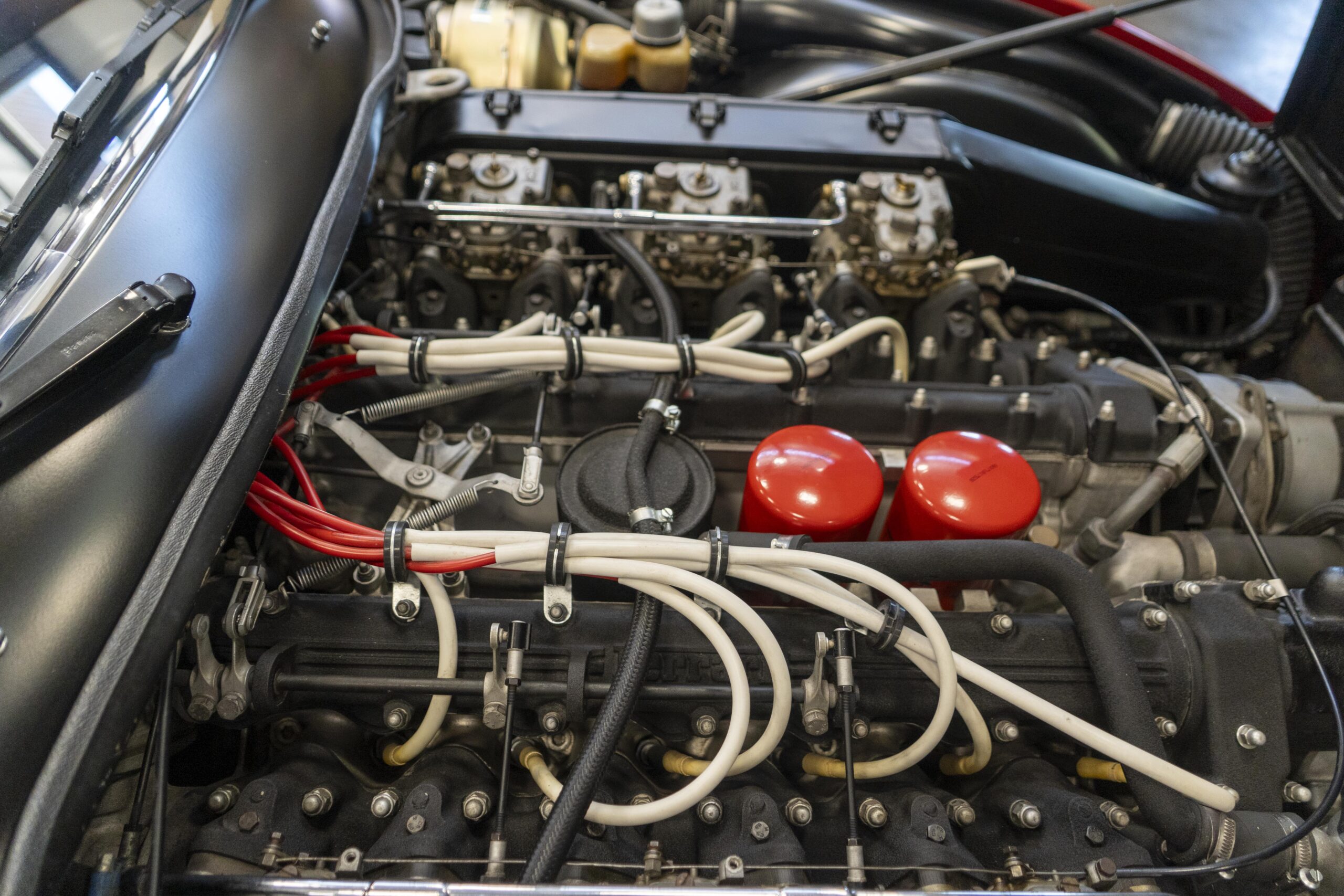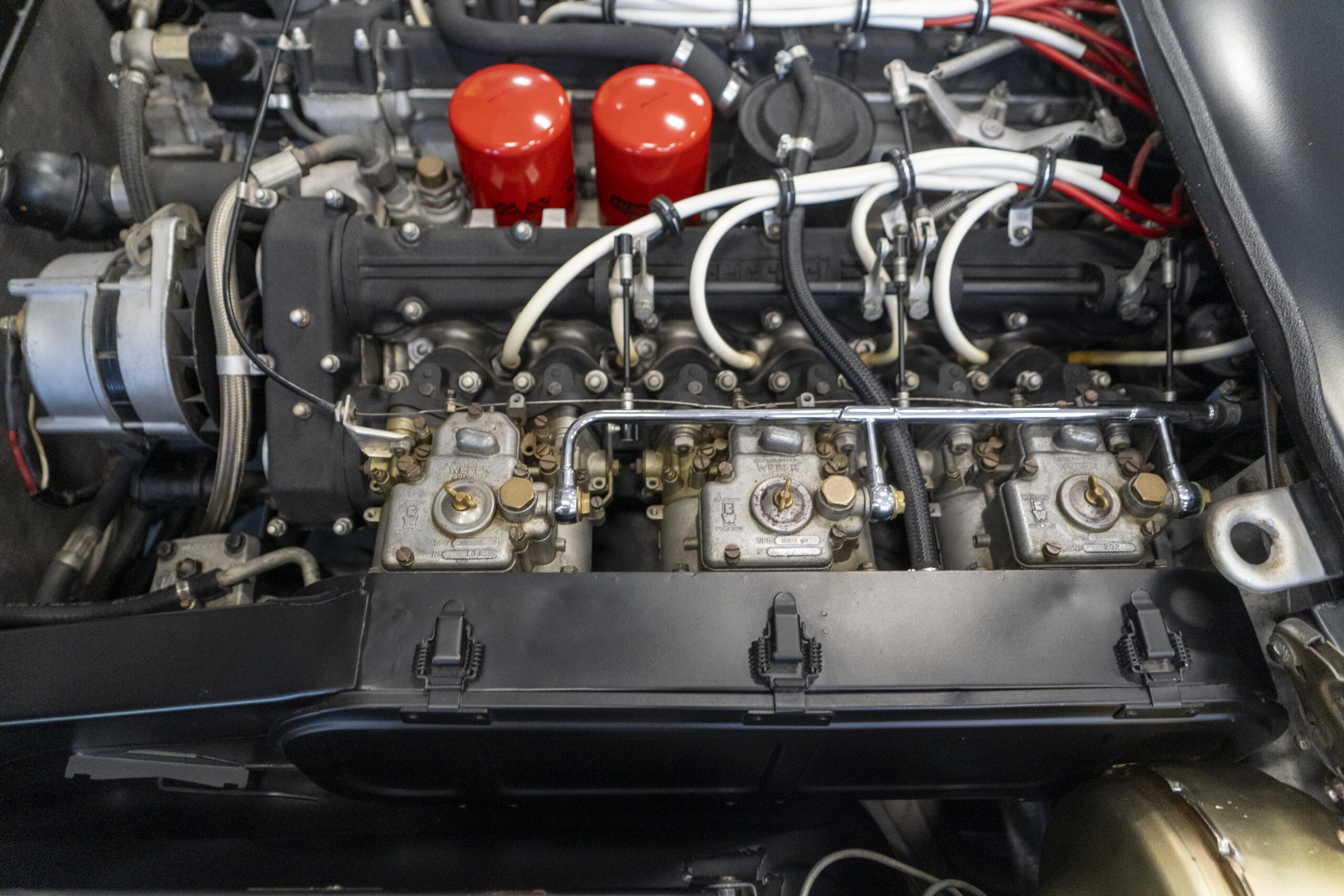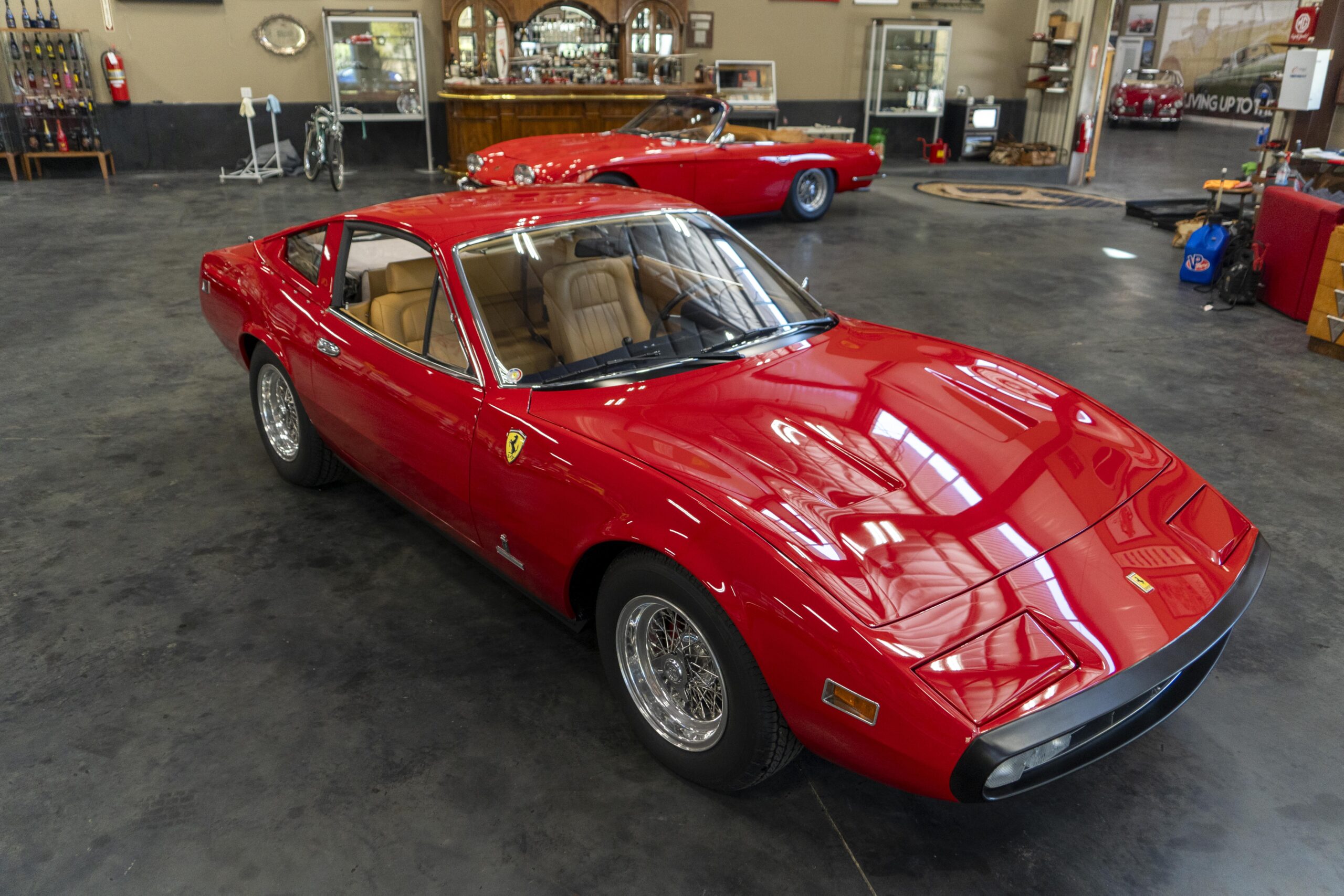 Ferrari 365 GTC/4 Spyder s/n 14745 is gorgeous with the top down, elegant with the top up and striking with the hardtop in place! She sits on an excellent set of 7 1/2″ x 15″ Borrani 4075 wheels with three-eared knockoffs and wears a set of Pirelli Cinturato HS 215/70 R15 tires with a correct 7 1/2″ x 15″ Borrani 4075 spare wheel and tire. 365 GTC/4 s/n 14745 is a Euro model and so doesn’t suffer through the power killing US smog pump, diverter valve, air injection tubing and air mixture tubes on the US models! Even better, because she is pre-1975 production Ferrari, 365 GTC/4 s/n 14745 is smog exempt in California and every other state.Â