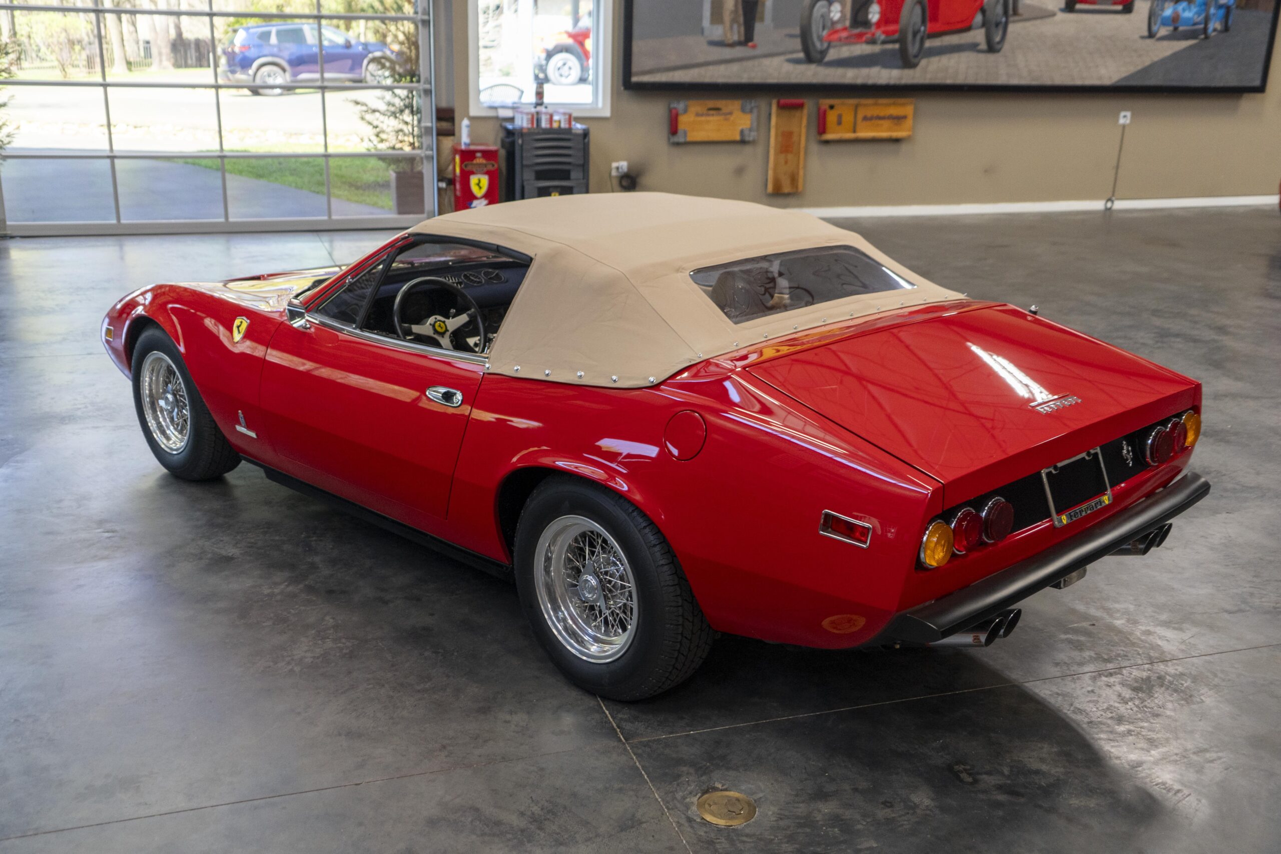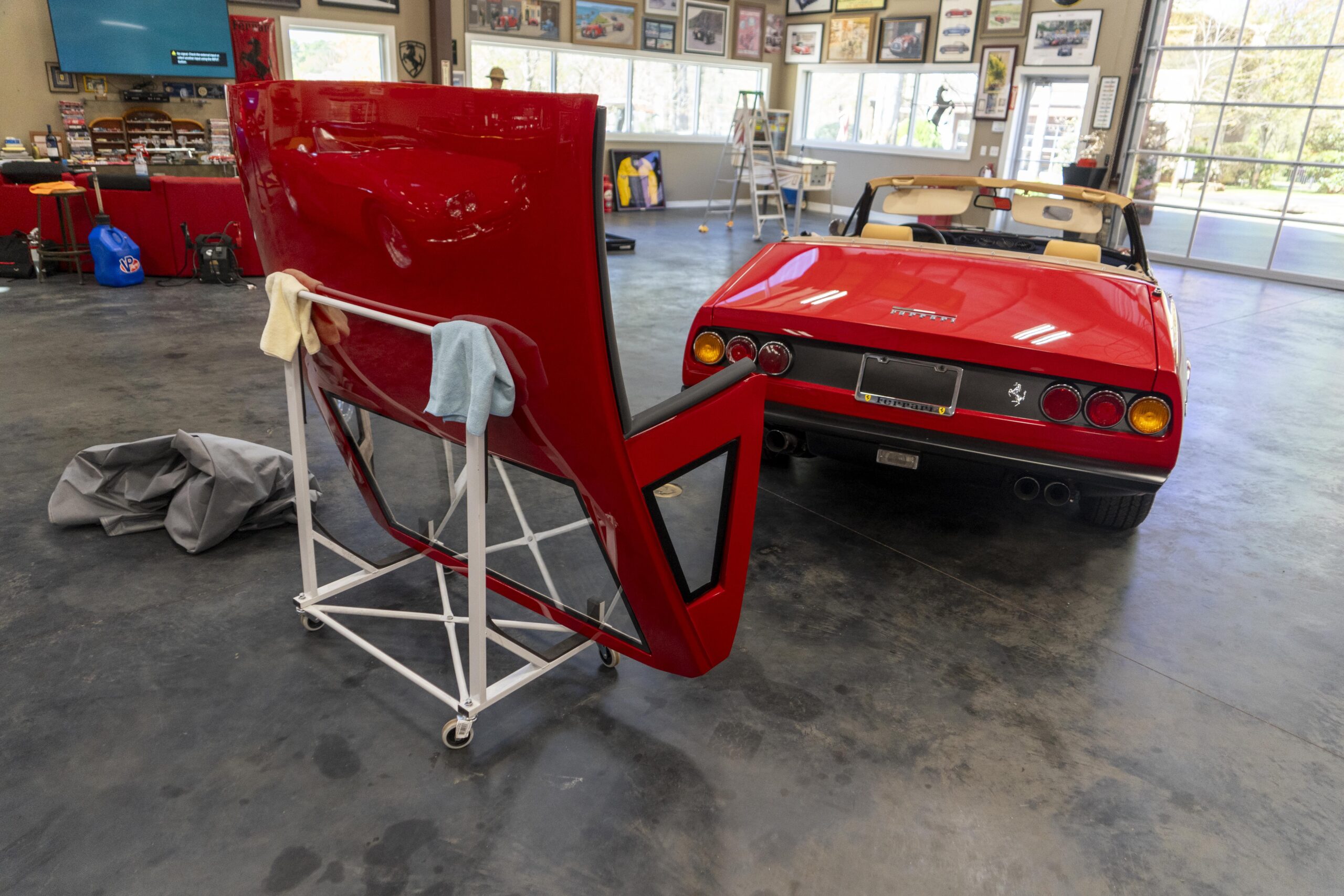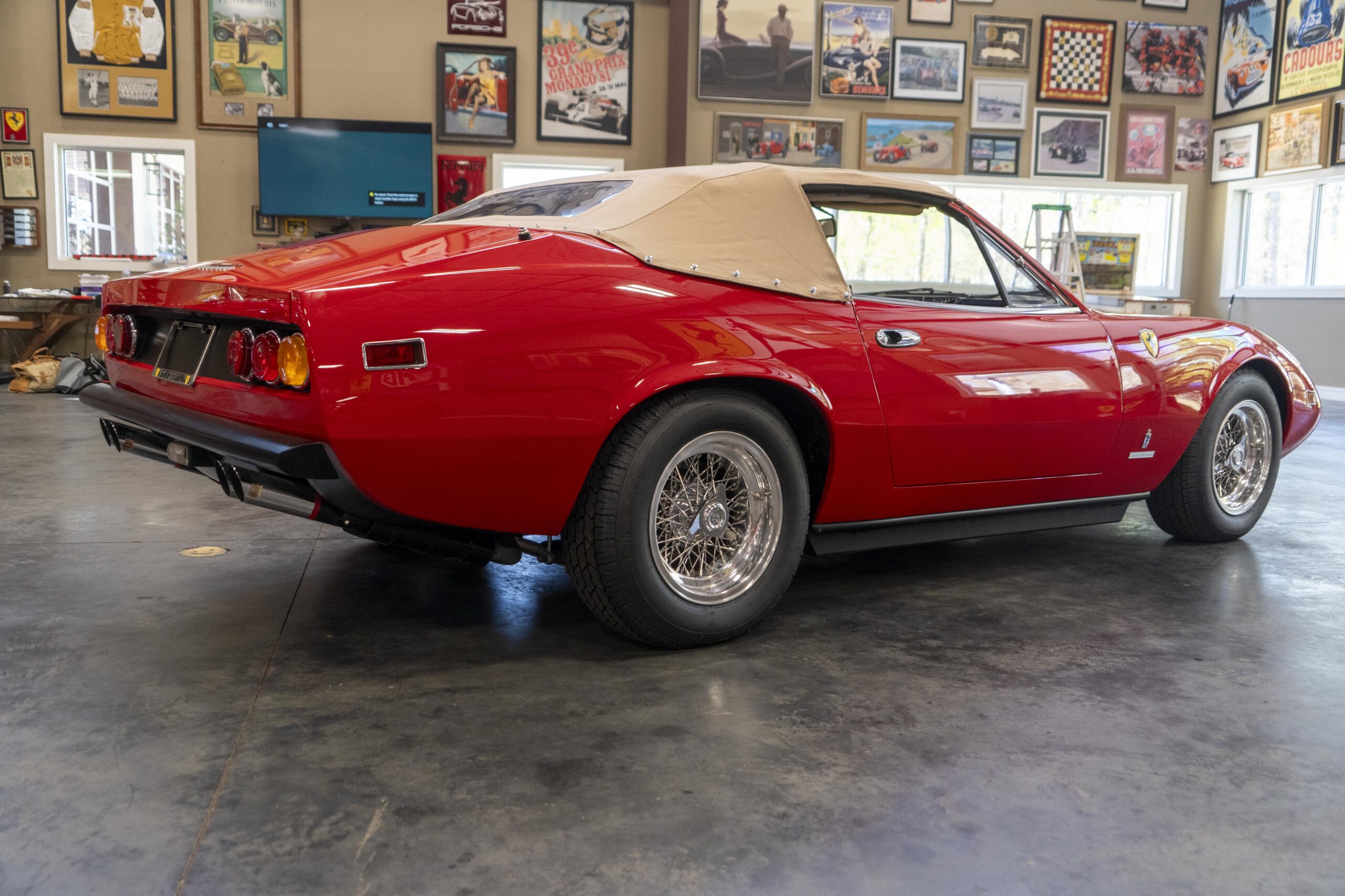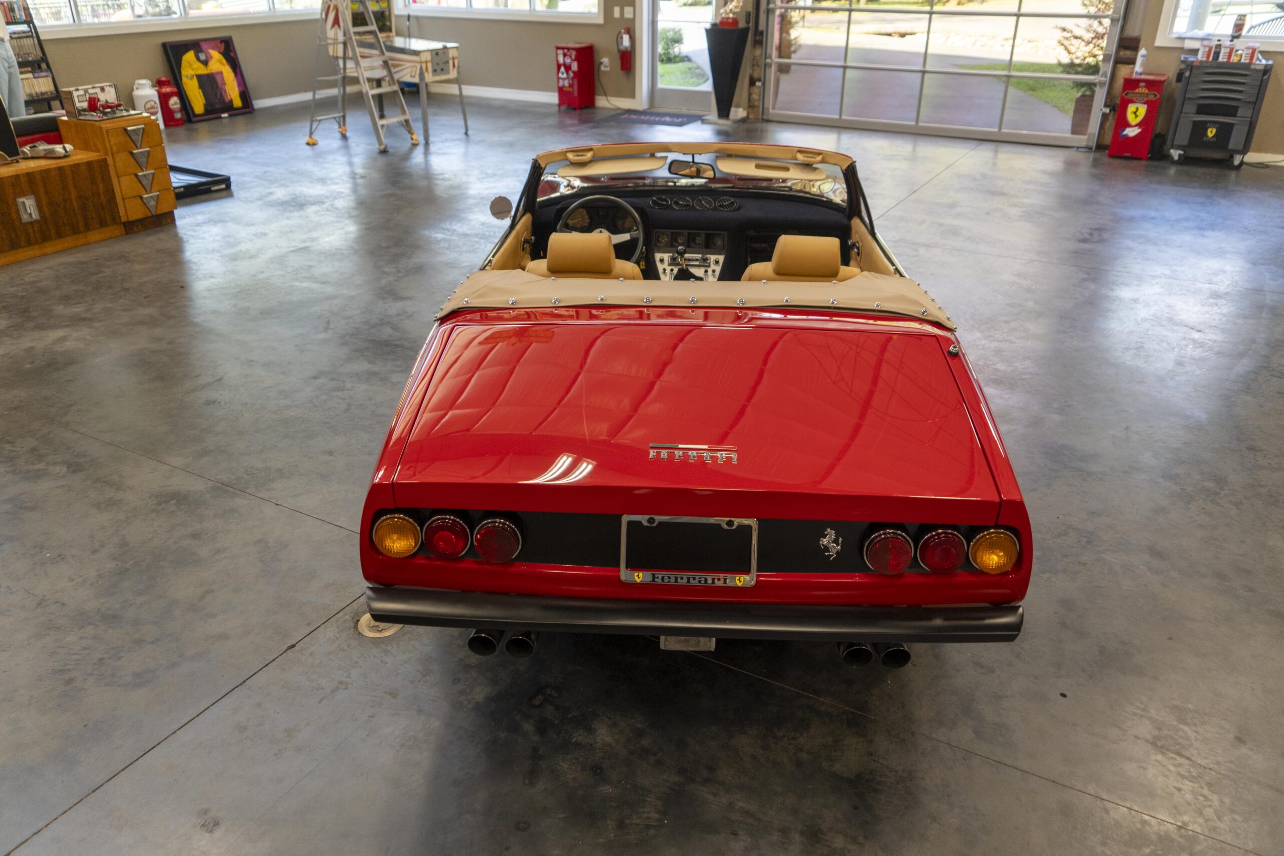 2024, 365 GTC/4 s/n 14745 was next sent to MC Bodyworks in Ovilla, Texas for a compelte repaint in Ferrari red, which was completed on 05 Nov., 2024. Today 365 GTC/4 s/n 14745 has only 42,660 miles and so had gone only 54 miles since the completion of the spyder conversion, hardtop fabrication and paintwork.