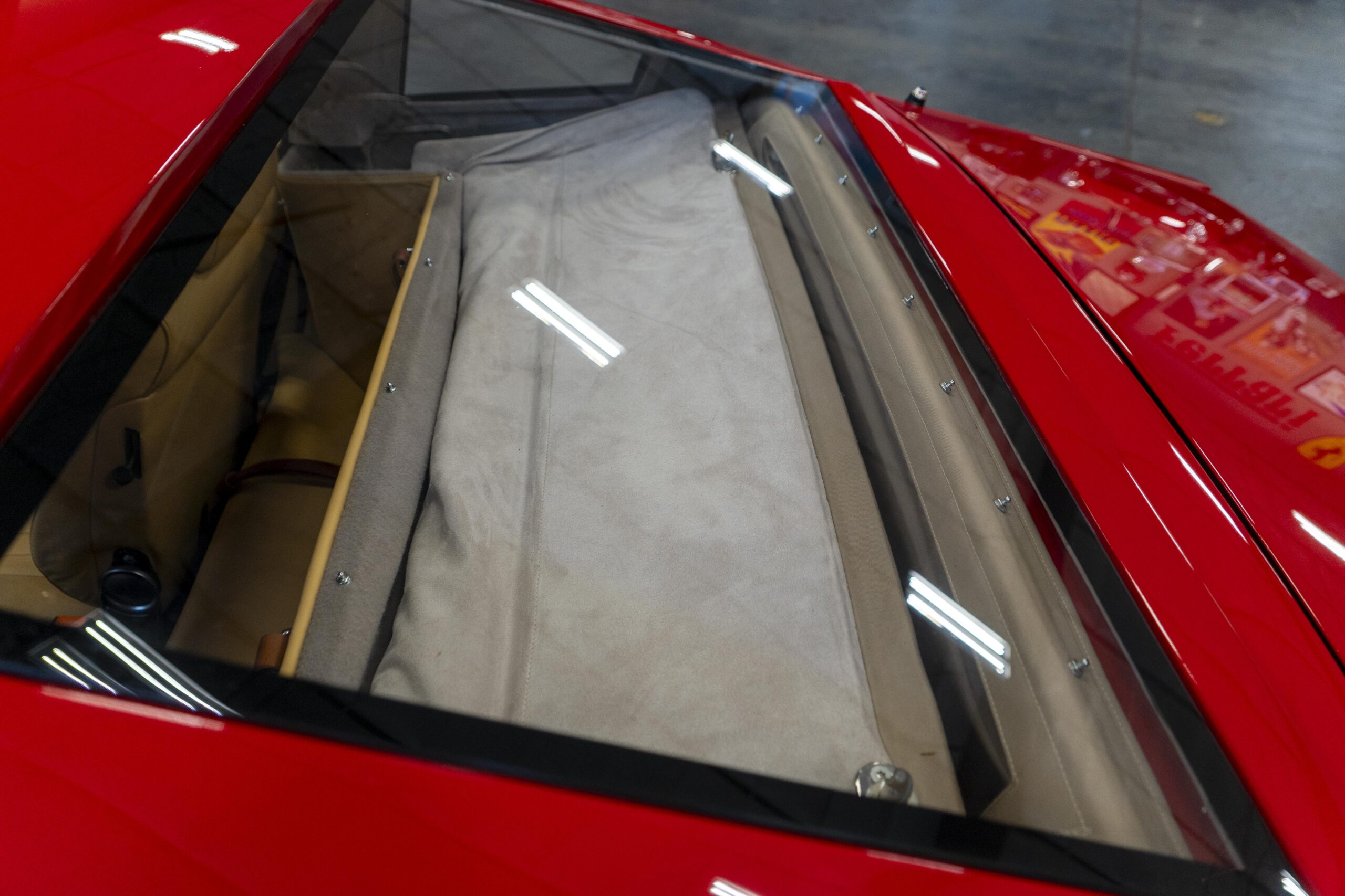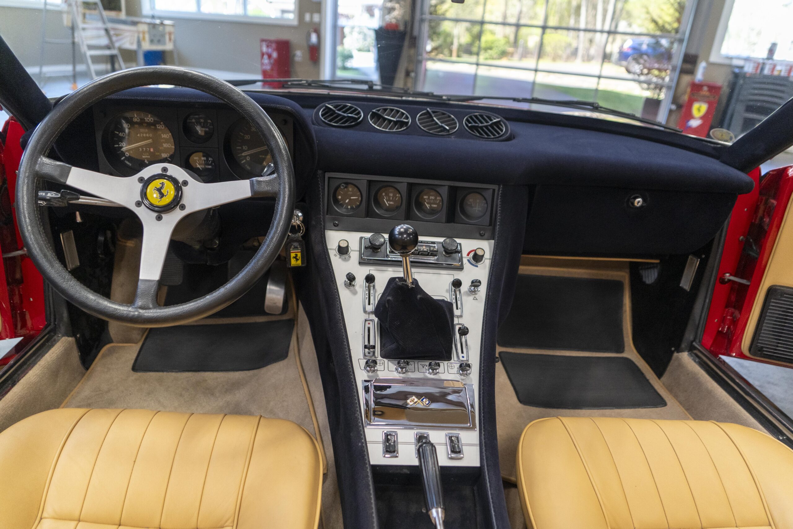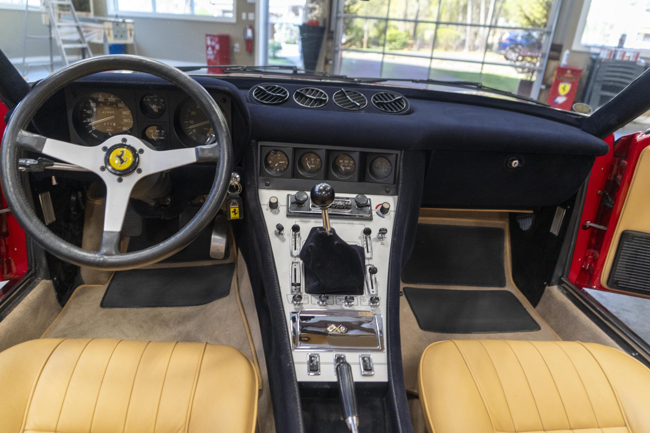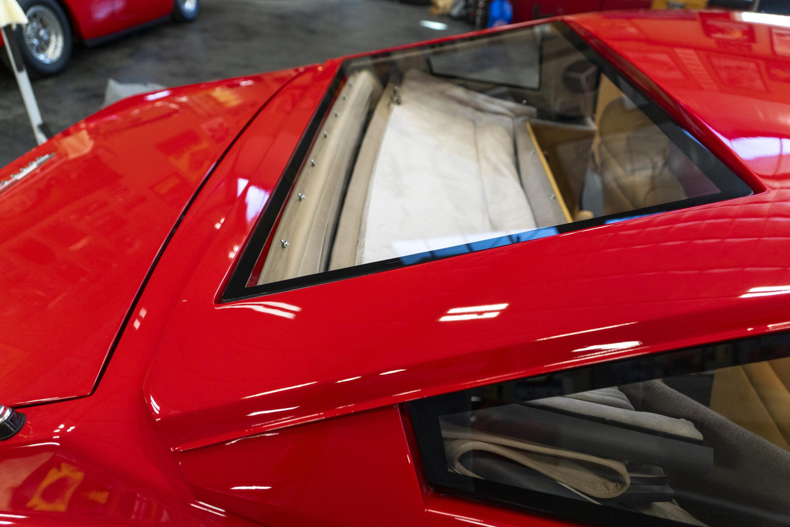2024, 365 GTC/4 s/n 14745 was next sent to MC Bodyworks in Ovilla, Texas for a compelte repaint in Ferrari red, which was completed on 05 Nov., 2024. Today 365 GTC/4 s/n 14745 has only 42,660 miles and so had gone only 54 miles since the completion of the spyder conversion, hardtop fabrication and paintwork.