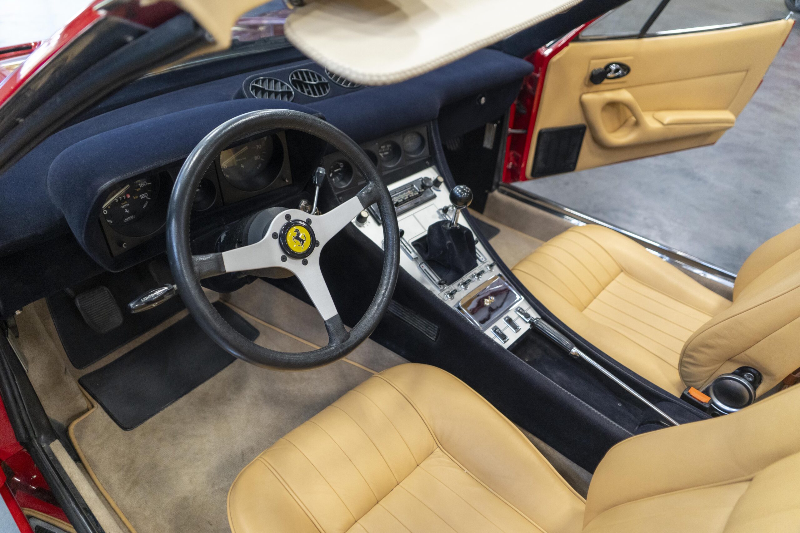 1988, offered in the Ferrari Market Letter, issue # 1306, by Ferrari of Los Gatos, Los Gatos, CA. Medium metallic blue with tan leather. Borranis. Needs paint and Borranis rechromed. Shows 18,875 miles.Â