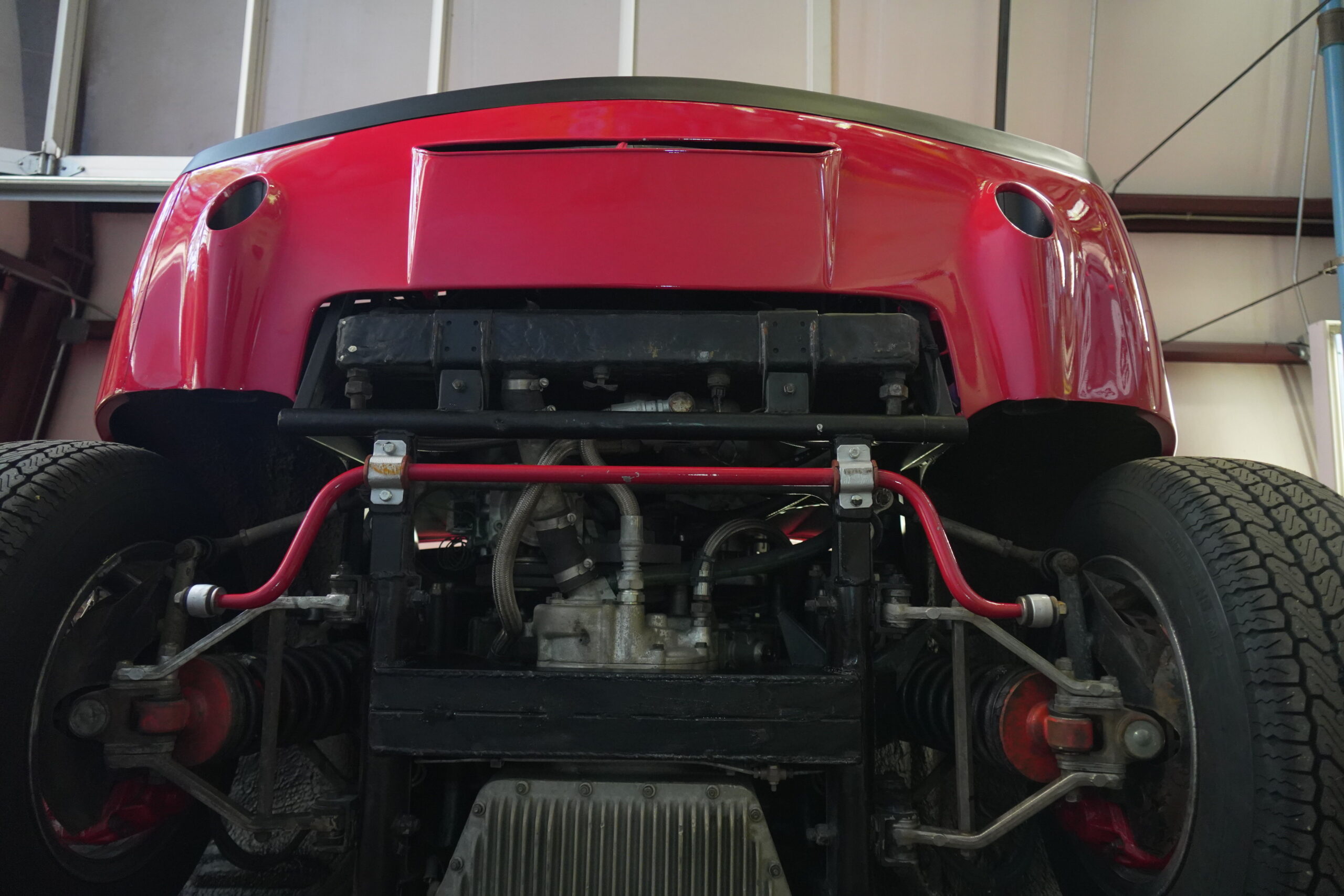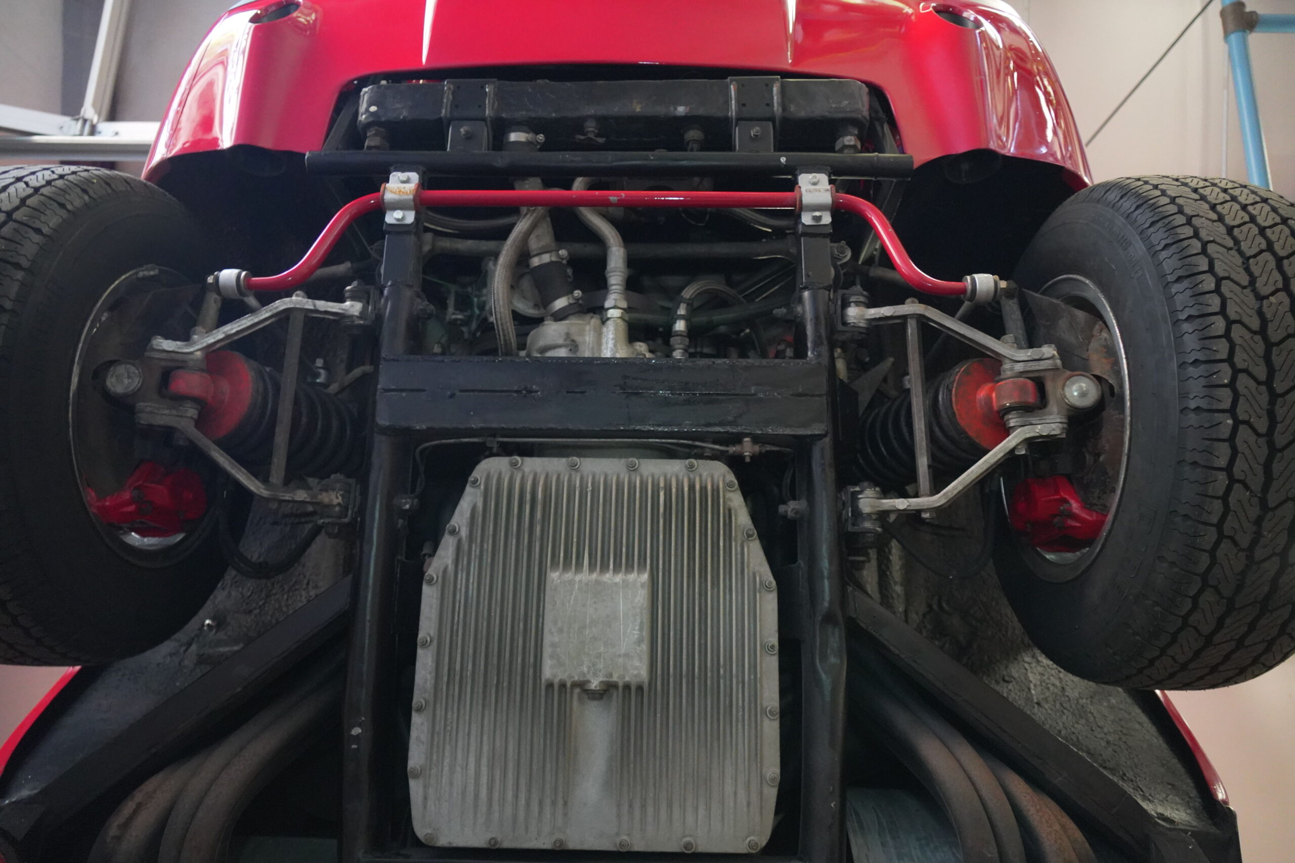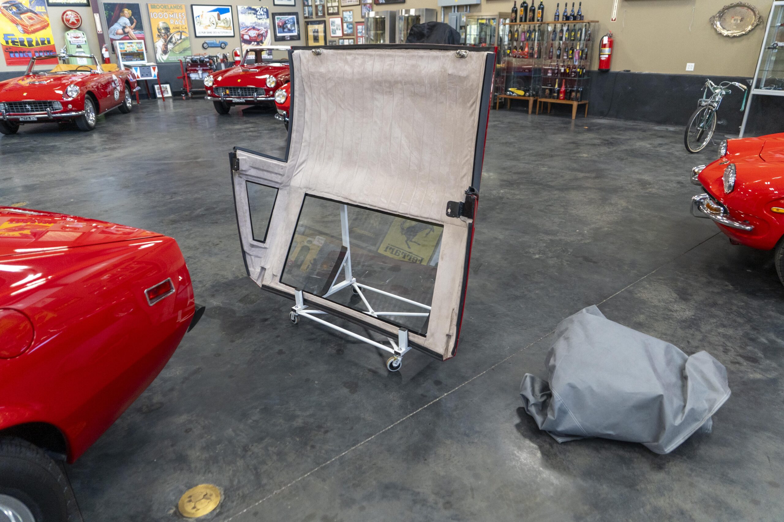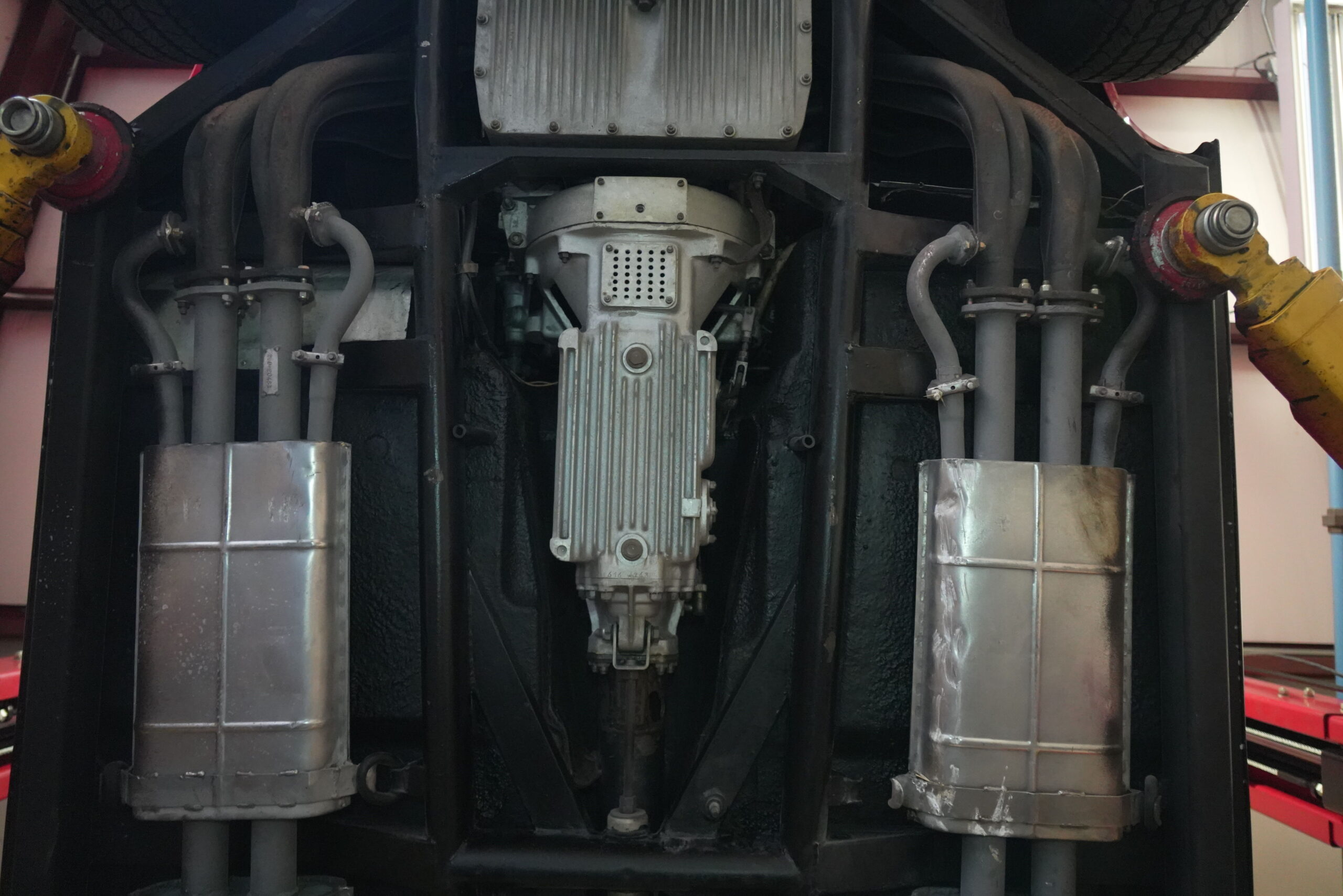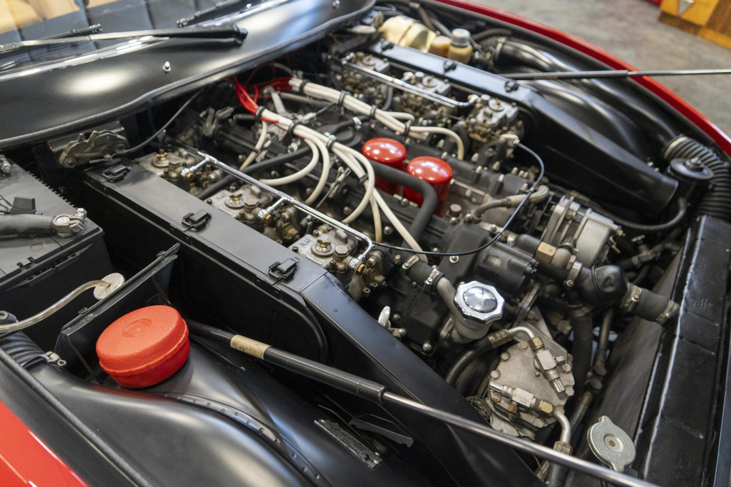 365 GTC/4 s/n 14745 was purchased by the current owner on 29 Jan., 2024 with 42,546 miles. The Spyder conversion was started by Newport Specialty cars on 12 March, 2024 and the conversion with both the hardtop and the wheel-around cart for the hardtop was completed on 31 July, 2024 at a cost of $109,000. 365 GTC/4 s/n 14745 was next repainted in Ferrari red, which was completed on late 2024. Today 365 GTC/4 s/n 14745 has only 42,660 miles and so had gone only 54 miles since the completion of the spyder conversion, hardtop fabrication and paintwork. The chassis and all under-panels are unusually clean and well detailed underneath.