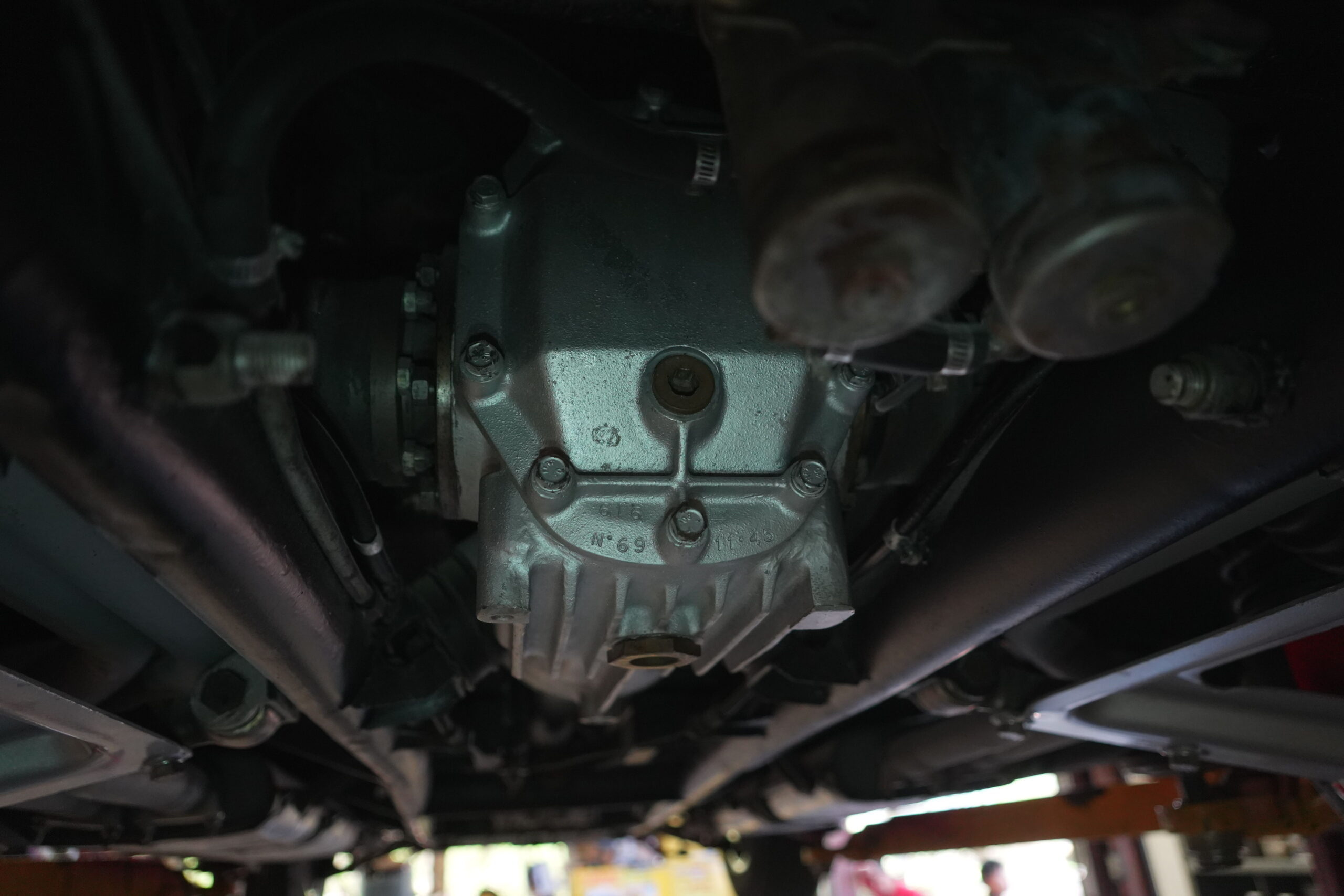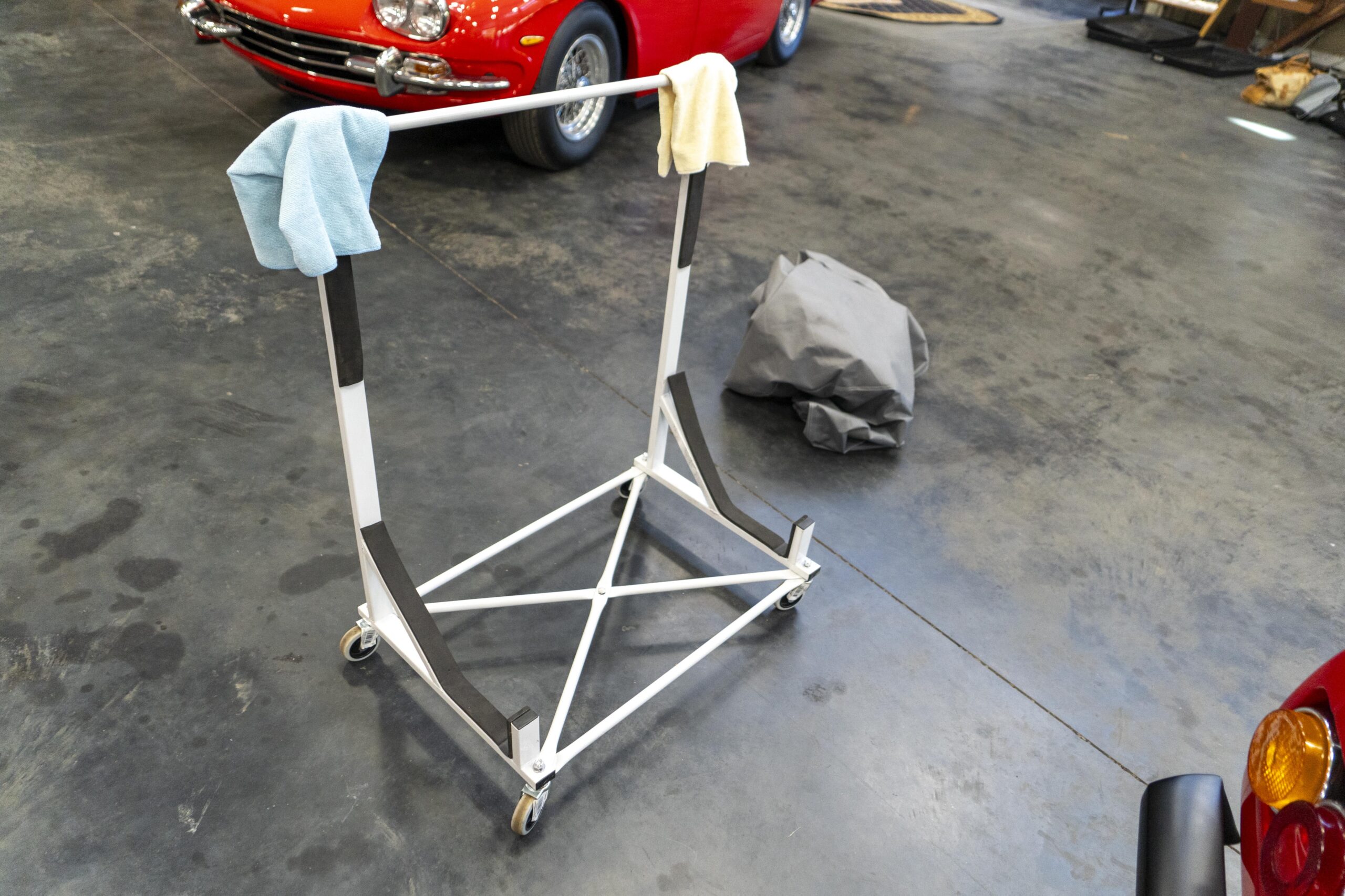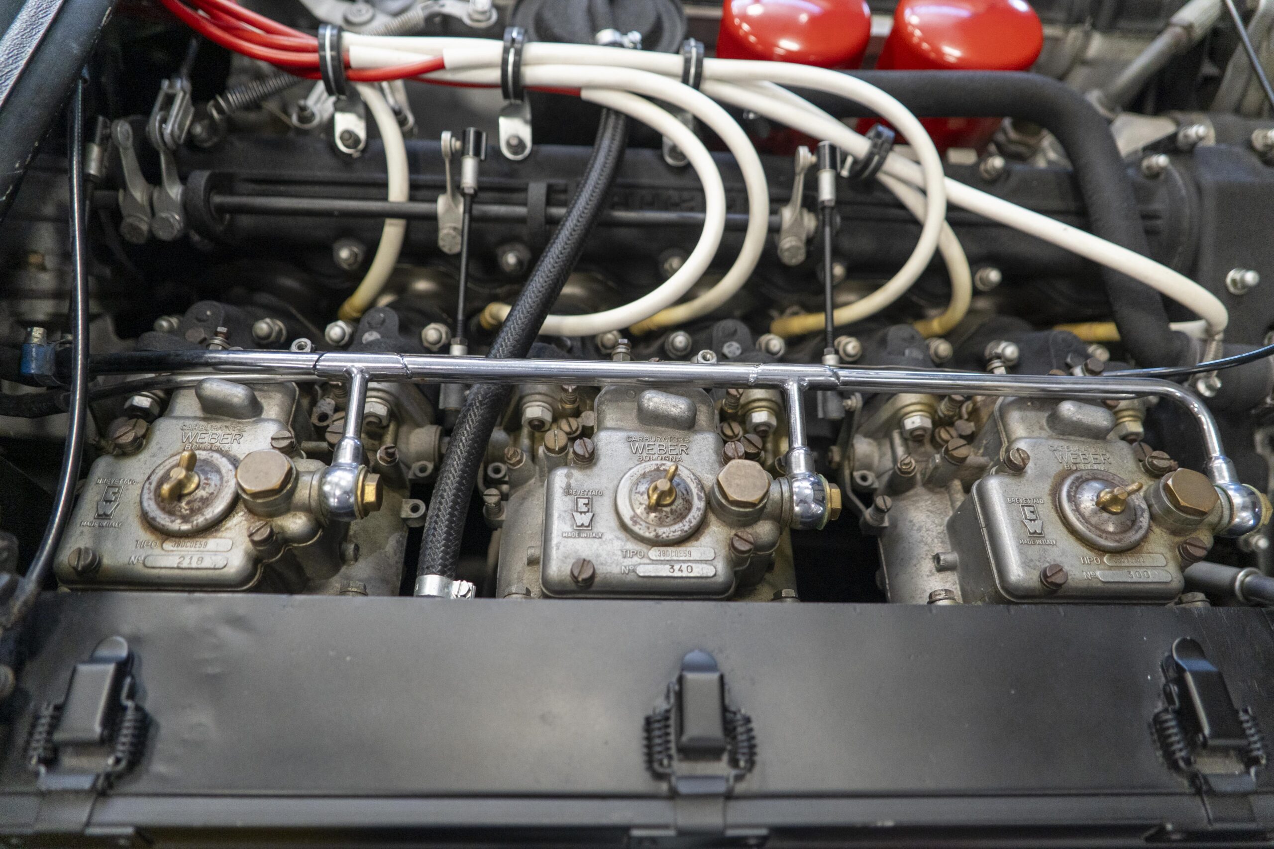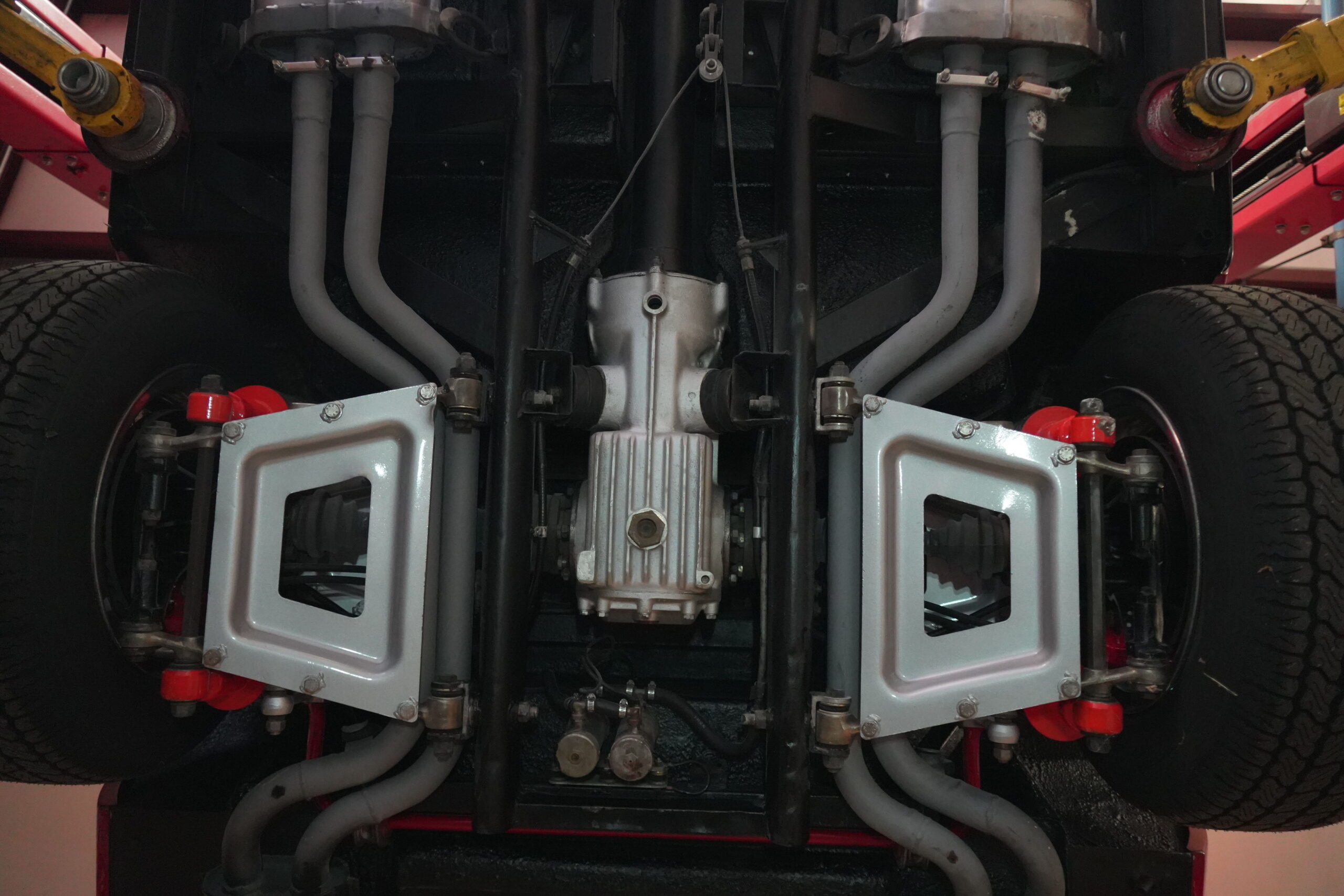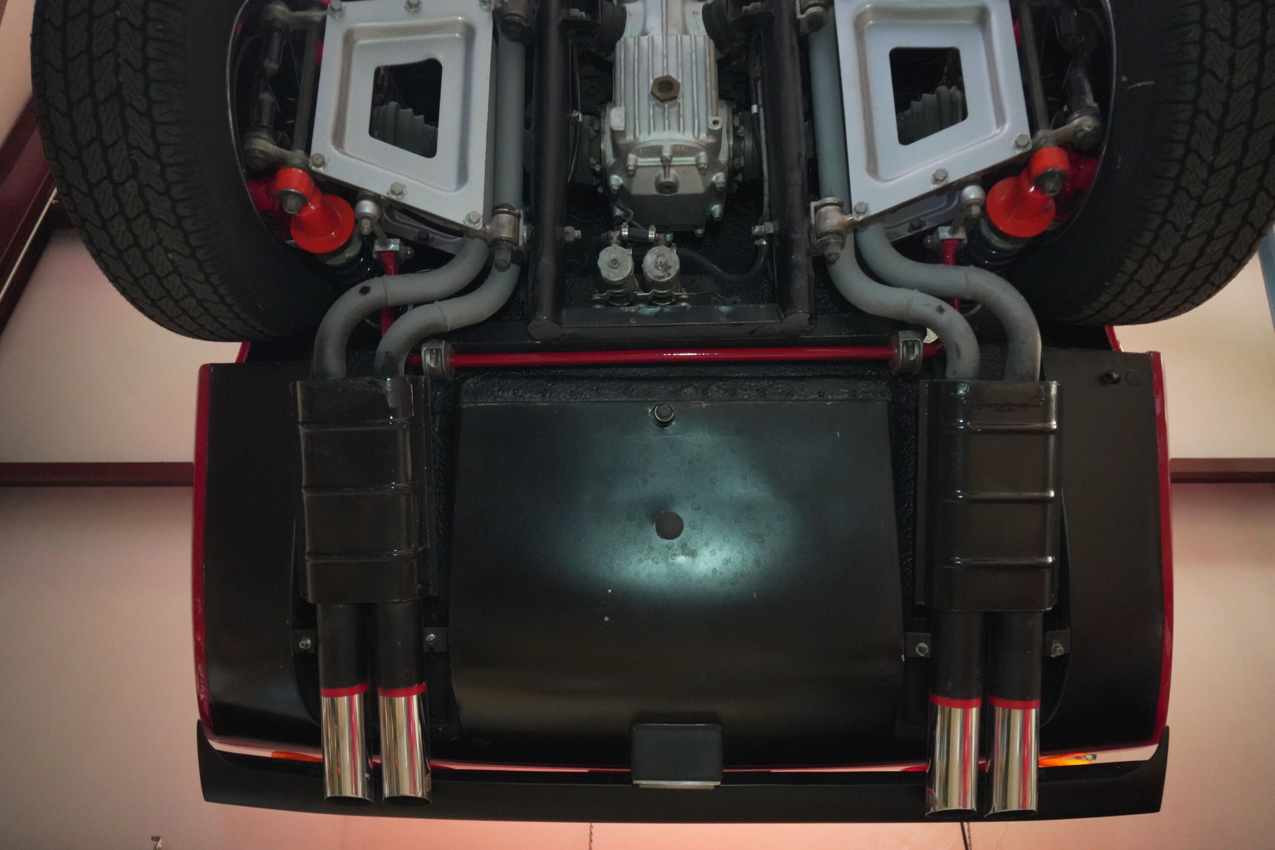 365 GTC/4 s/n 14745 was purchased by the current owner on 29 Jan., 2024 with 42,546 miles. The Spyder conversion was started by Newport Specialty cars on 12 March, 2024 and the conversion with both the hardtop and the wheel-around cart for the hardtop was completed on 31 July, 2024 at a cost of $109,000. 365 GTC/4 s/n 14745 was next repainted in Ferrari red, which was completed on late 2024. Today 365 GTC/4 s/n 14745 has only 42,660 miles and so had gone only 54 miles since the completion of the spyder conversion, hardtop fabrication and paintwork. The chassis and all under-panels are unusually clean and well detailed underneath.