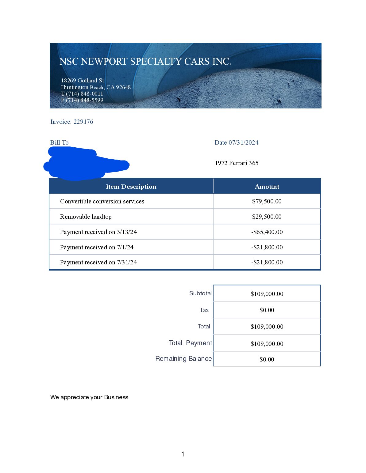 2024, 12 March, the Spyder conversion was started by Newport Specialty cars, their invoice was $79,500 for the spyder conversion and the removable hardtop was another $29,500 for a total of $109,000 USD.