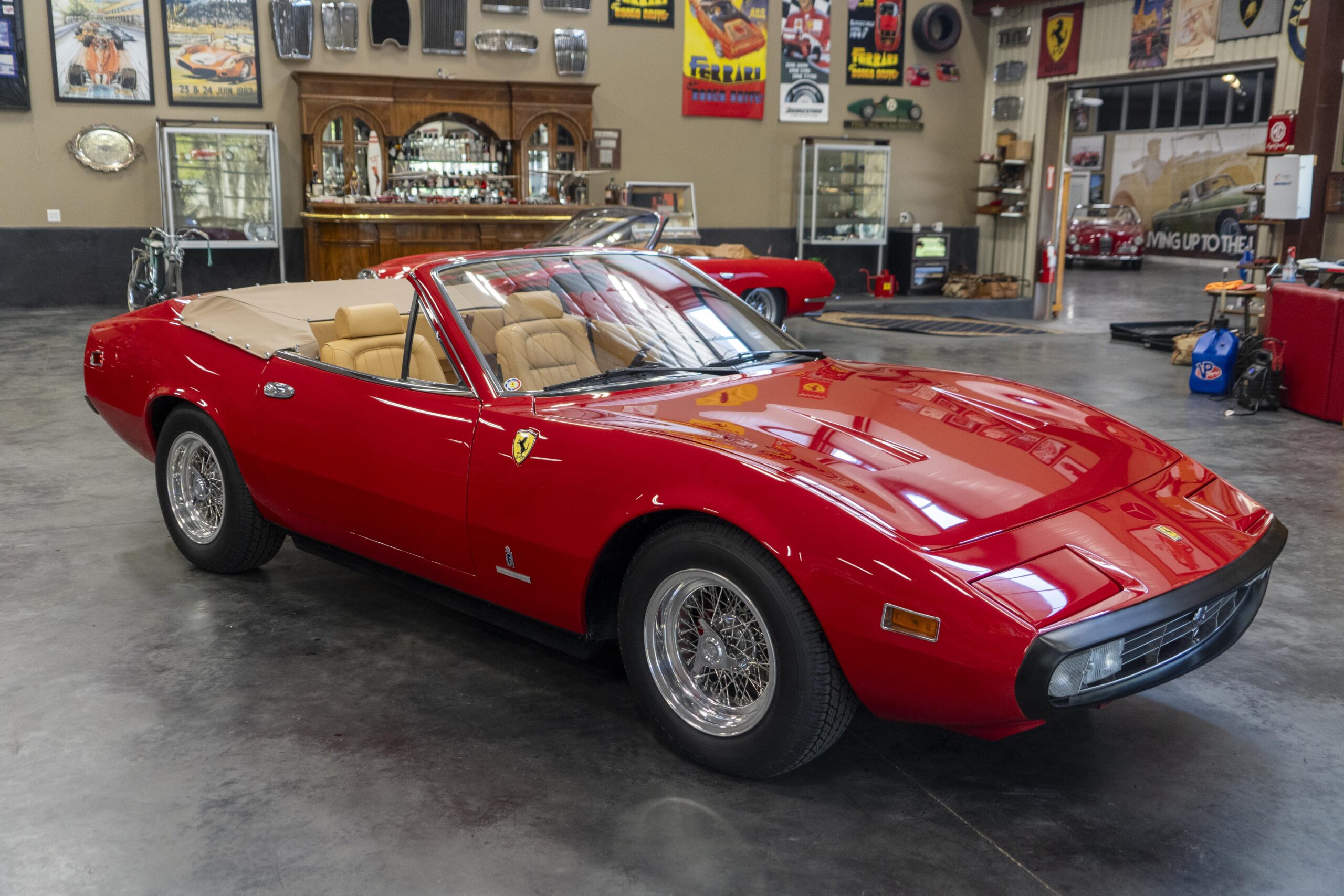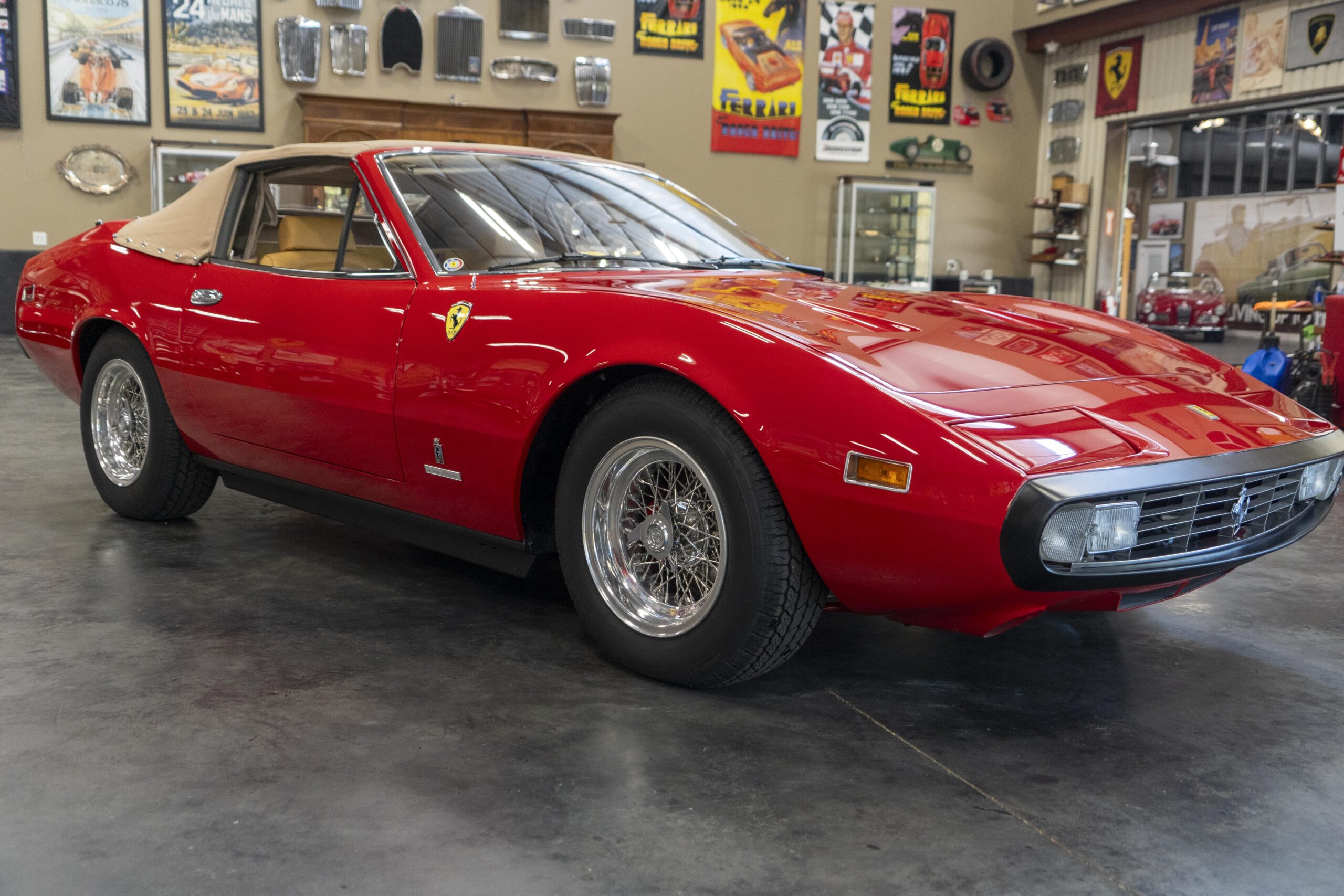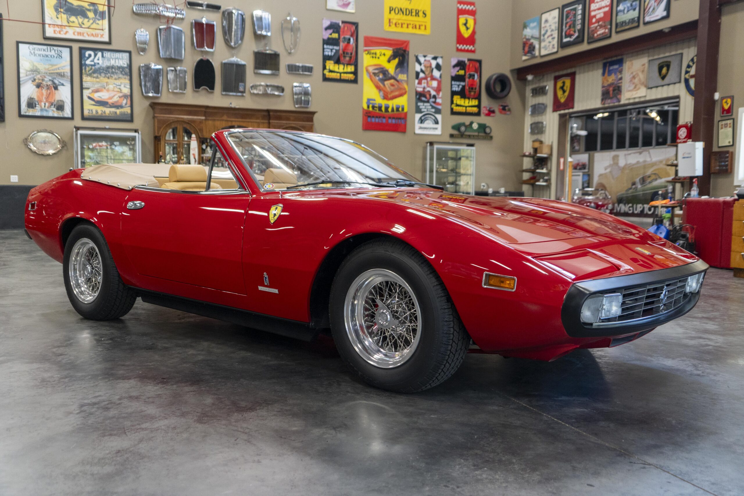 We are pleased to offer 1972 Euro model Ferrari 365 GTC/4 s/n 14745, now a 365 GTC/4 Spyder conversion with both the spyder conversion and a unique one-off lift-off hardtop done by Newport Specialty Cars in Huntington Beach, California. Today 365 GTC/4 s/n 14745 offers top-down driving in a great-looking; great-running; great-driving; great sounding and well-documented 365 GTC/4 that would be an instant stand-out at your local Cars & Coffee meet-up or on a weekend canyon run. Newport Specialty Cars in Huntington Beach are experts in Spyder conversions and they have done several hundred spyder and cabriolet conversions on Ferraris, Lamborghinis, Mercedes and more. Go to www.NewportConvertible.com for their website. In 2024 Ferrari 365 GTC/4 s/n 14745 was shipped to Newport Specialty Cars for both a spyder conversion priced at $79,500.00 and the building of a unique hardtop, priced at another $29,500.00 for a total of $109,000.00 USD! The drop-top is easy to use, going both up and down is a one-man operation, while removing or fitting the hardtop is a two man operation.Â