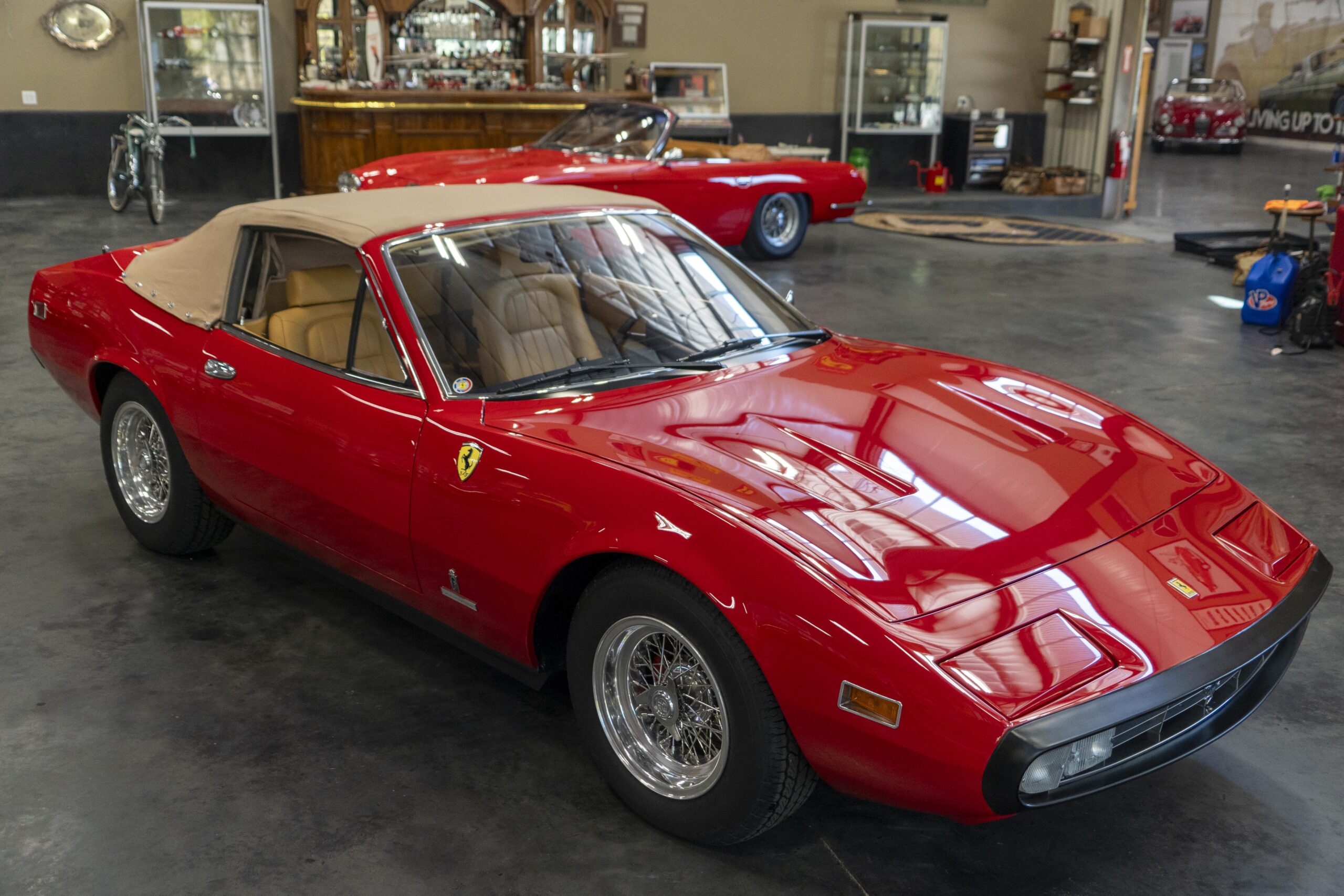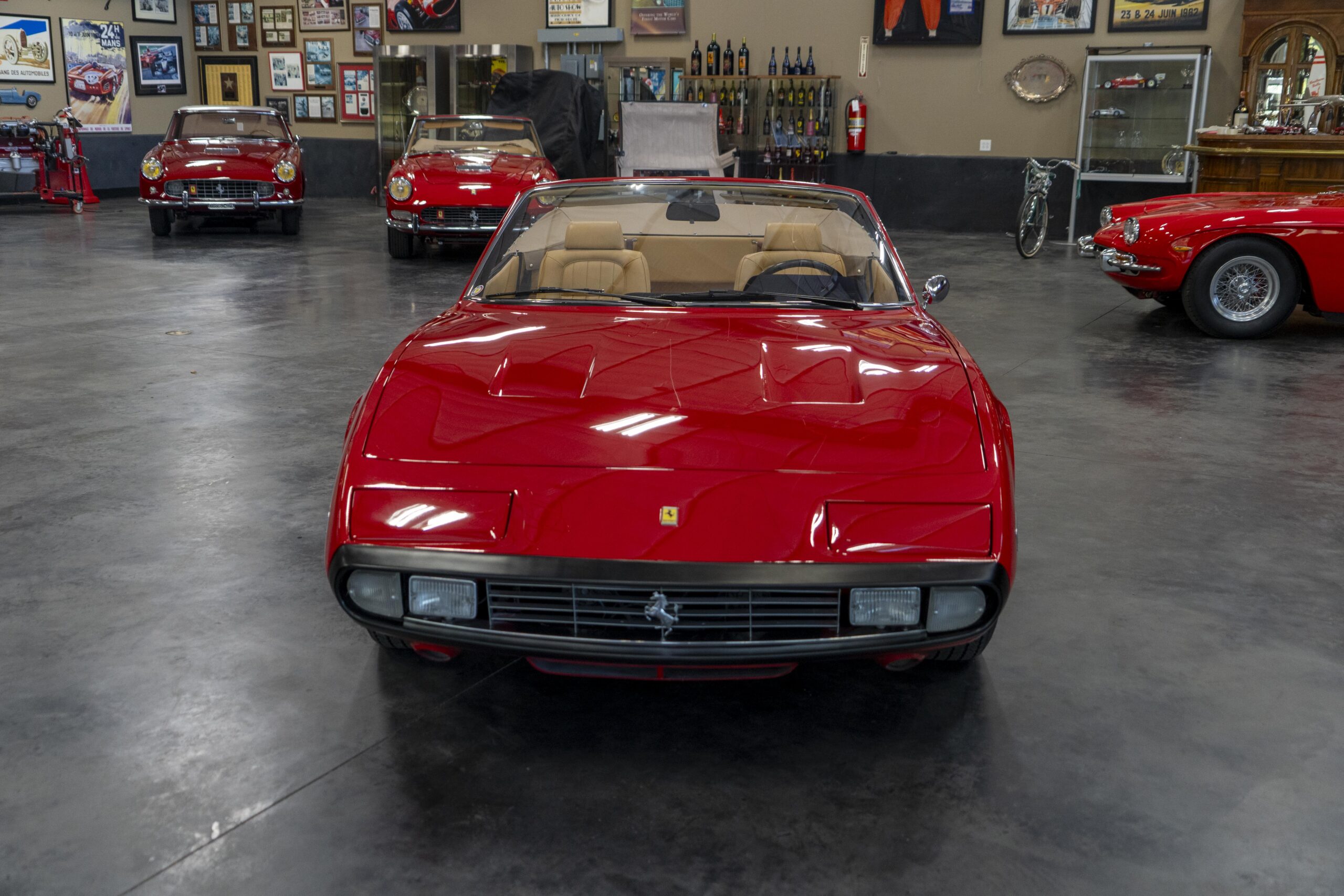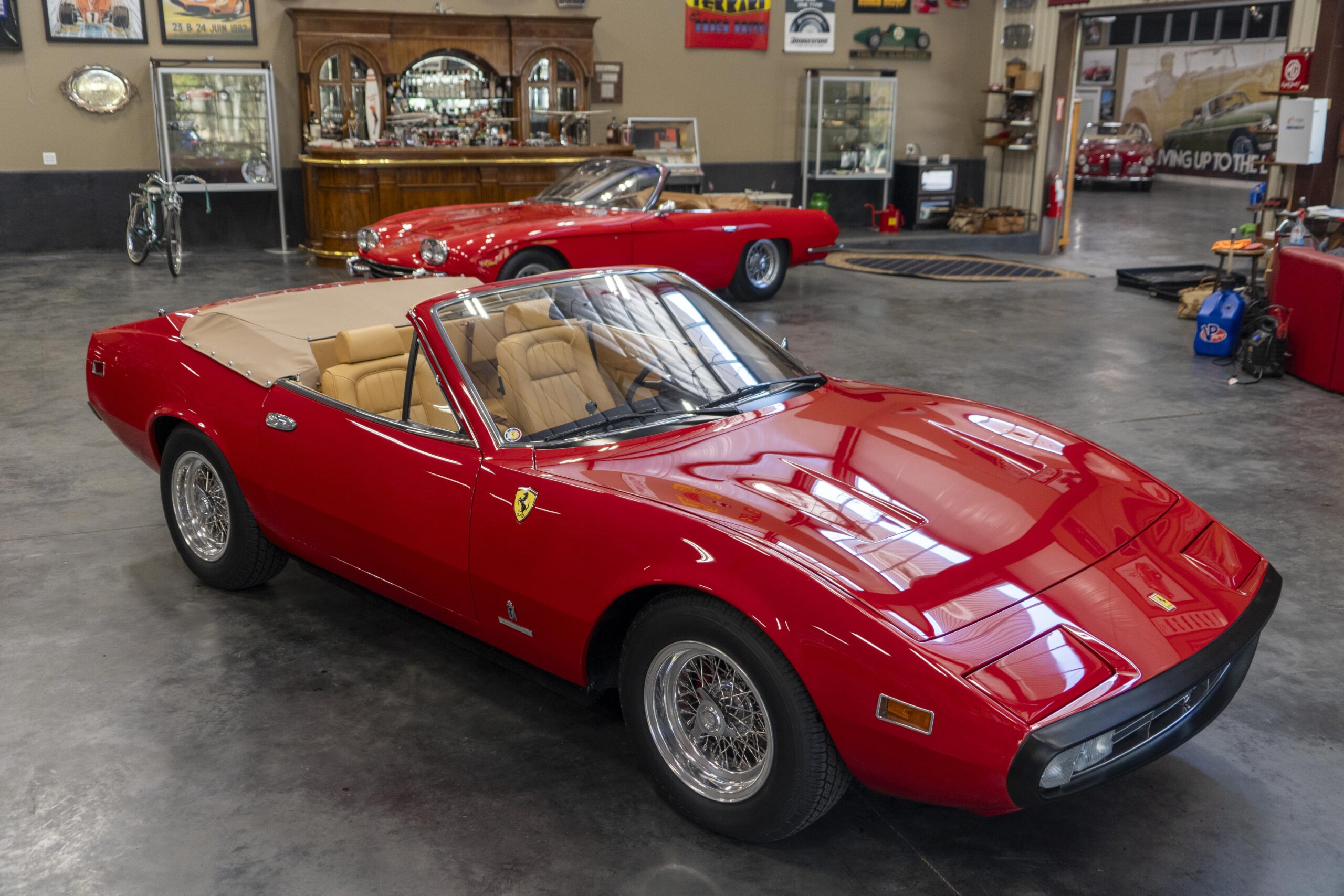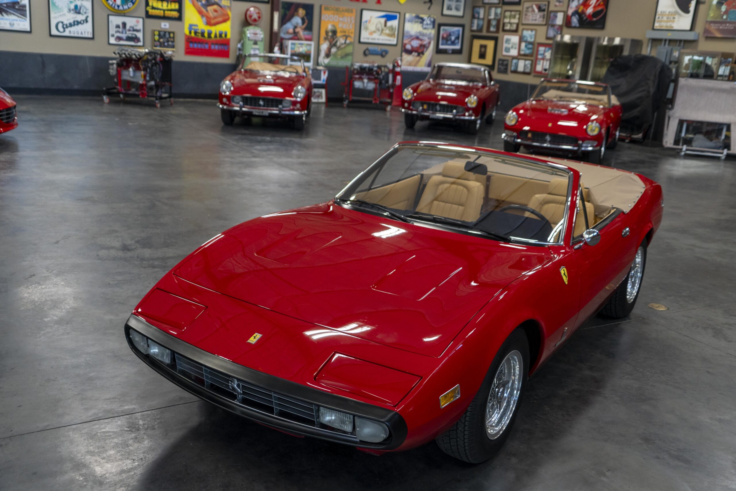 We are pleased to offer 1972 Euro model Ferrari 365 GTC/4 s/n 14745, now a 365 GTC/4 Spyder conversion with both the spyder conversion and a unique one-off lift-off hardtop done by Newport Specialty Cars in Huntington Beach, California. Today 365 GTC/4 s/n 14745 offers top-down driving in a great-looking; great-running; great-driving; great sounding and well-documented 365 GTC/4 that would be an instant stand-out at your local Cars & Coffee meet-up or on a weekend canyon run. Newport Specialty Cars in Huntington Beach are experts in Spyder conversions and they have done several hundred spyder and cabriolet conversions on Ferraris, Lamborghinis, Mercedes and more. Go to www.NewportConvertible.com for their website. In 2024 Ferrari 365 GTC/4 s/n 14745 was shipped to Newport Specialty Cars for both a spyder conversion priced at $79,500.00 and the building of a unique hardtop, priced at another $29,500.00 for a total of $109,000.00 USD! The drop-top is easy to use, going both up and down is a one-man operation, while removing or fitting the hardtop is a two man operation.Â