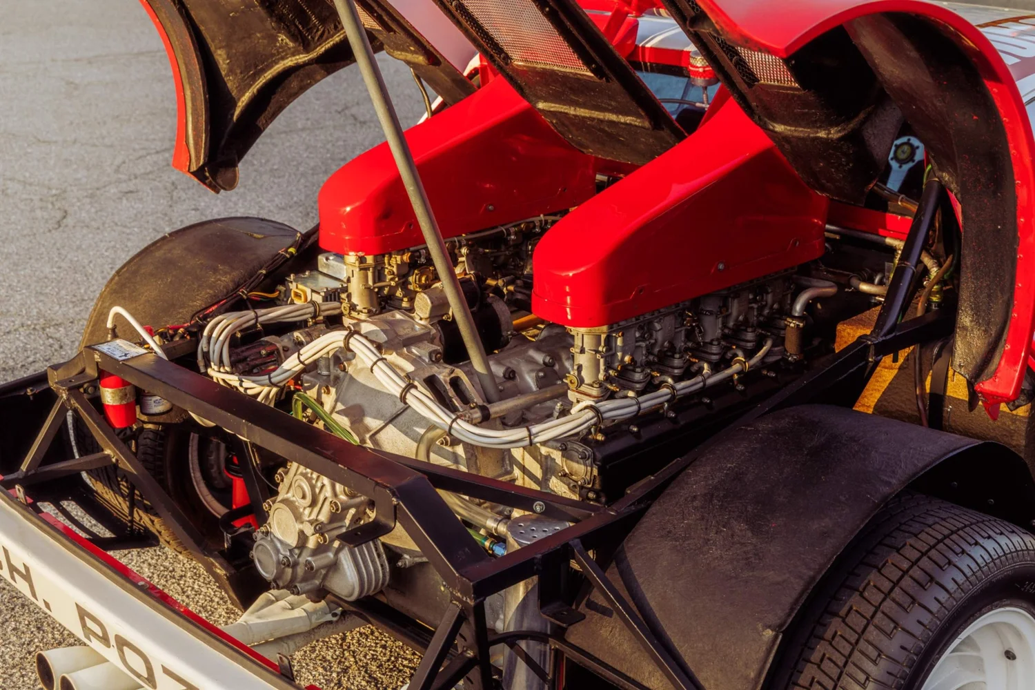 The five-liter flat-12 engine was built and tuned by the factory to produce just over 450 bhp. It was mounted on top of the stock five-speed gearbox which