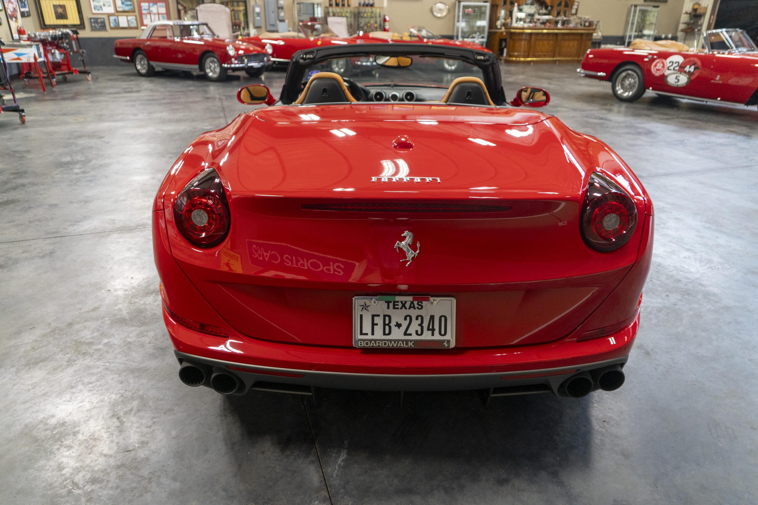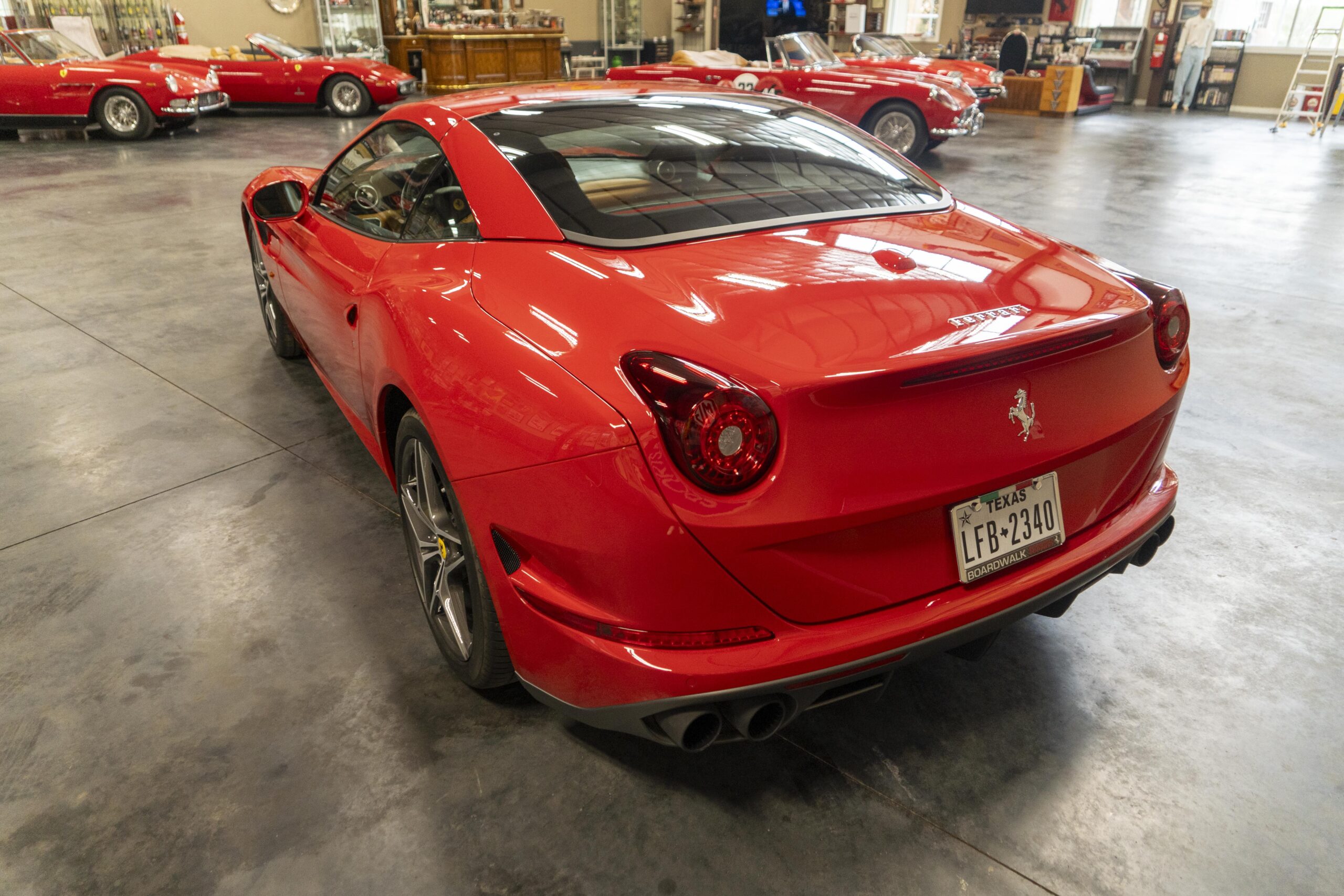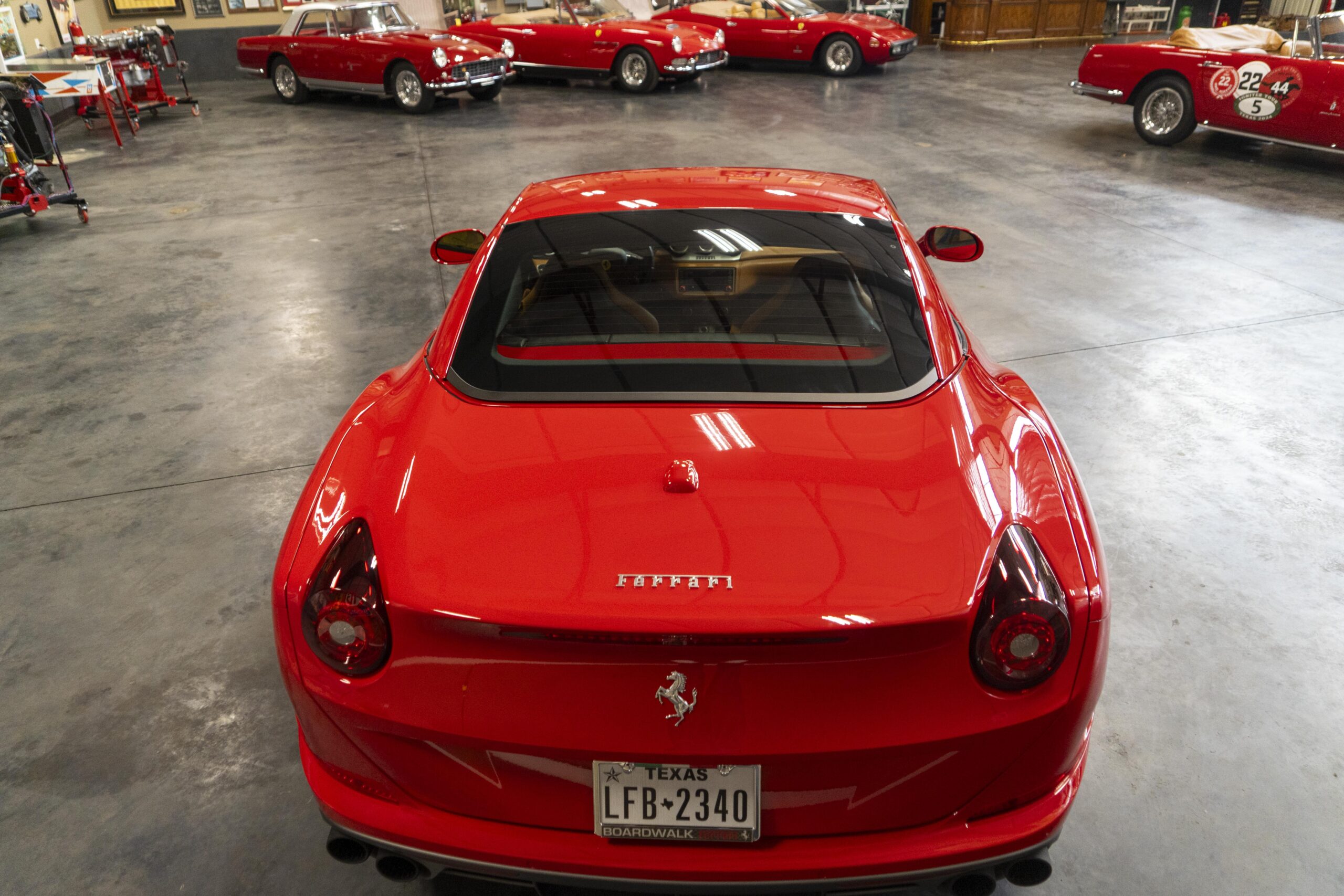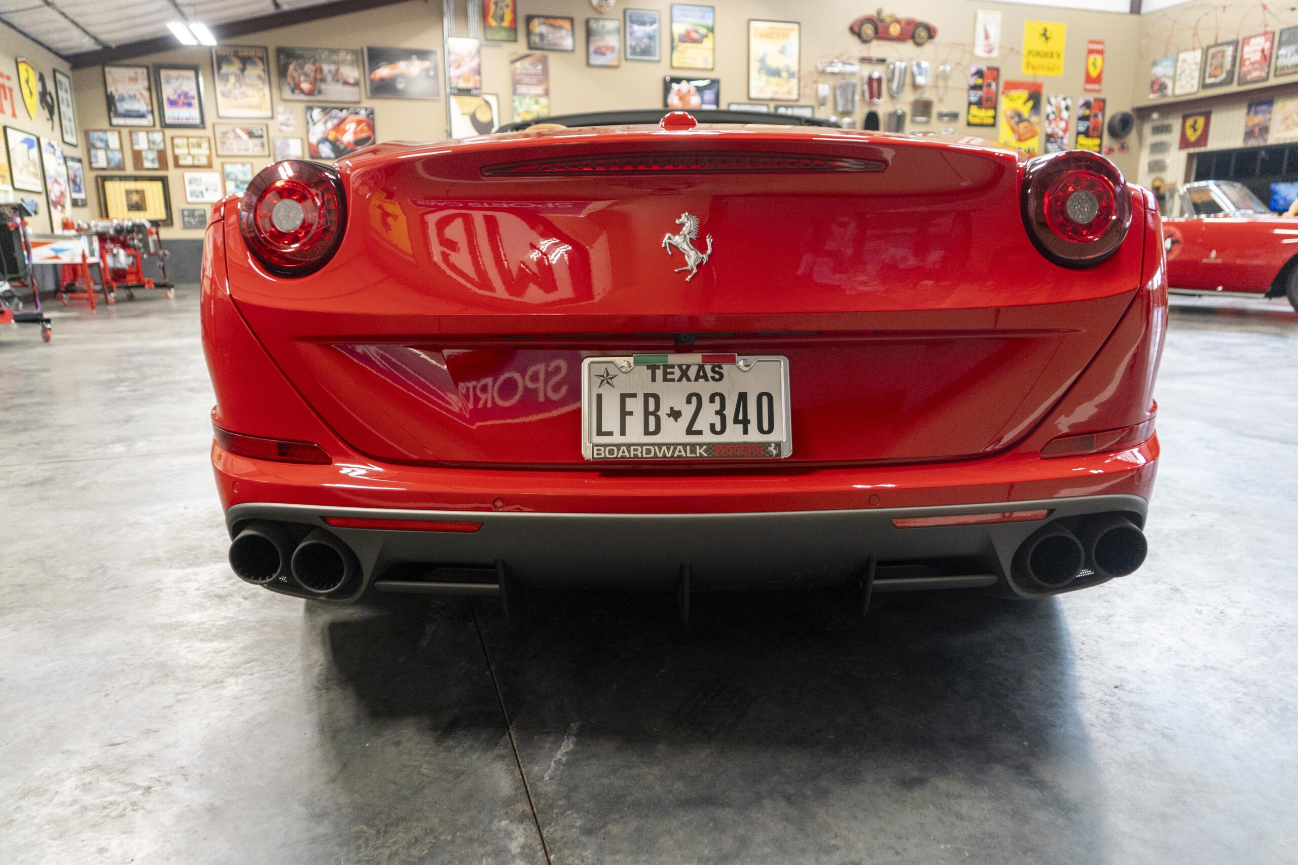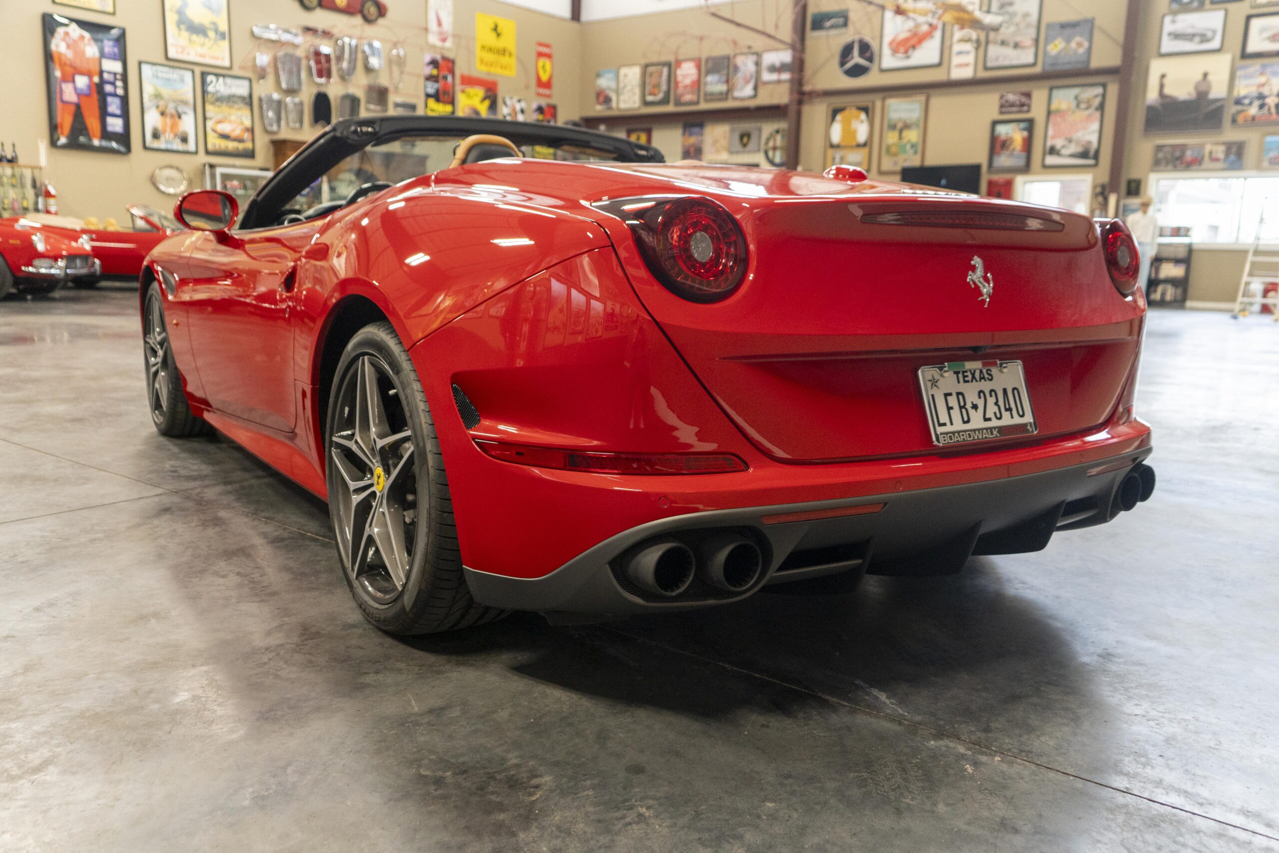 2018 California T s/n 228295 was sold new by Boardwalk Ferrari in Plano, Texas and, as a low mileage one-owner car, has lived in Texas since new. Watching the power top in action, going from down-to-up or vice-versa, in a mere 14 seconds, is a show unto itself! She comes with all the goodies including two keys; the owner’s manual in it’s pouch; the full tool set in its case; the air compressor; the battery tender and the red Factory car cover in its carrying bag. It even has the Factory white gloves, in their small red bag, should a tire change be necessary! An interesting feature of the “T” is a circular digital boost gauge, mounted between the dashboards circular air vents, which monitors the turbo boost, turbo response and turbo efficiency. It is essentially a glorified clock, but it’s great fun to watch in action.