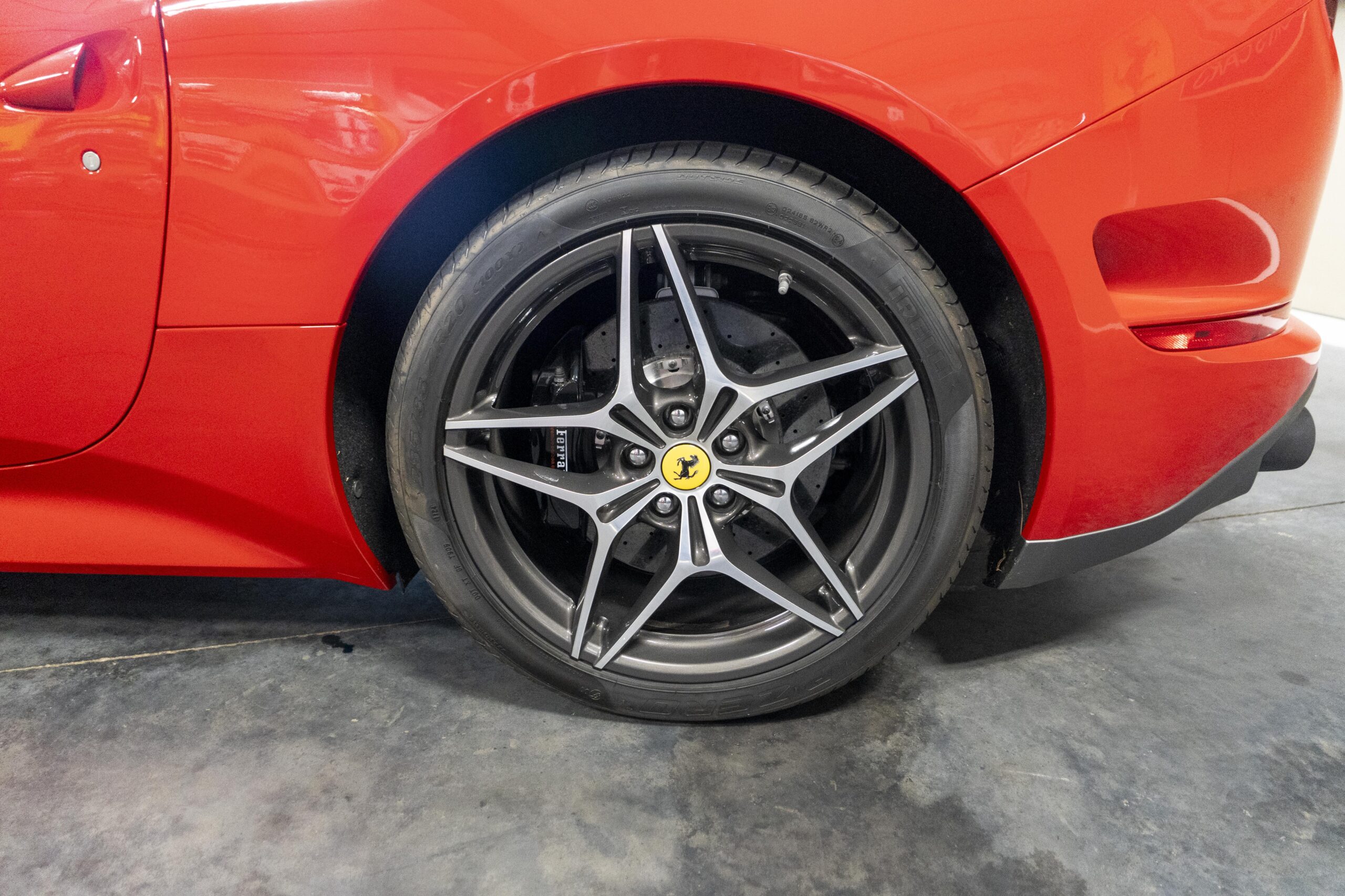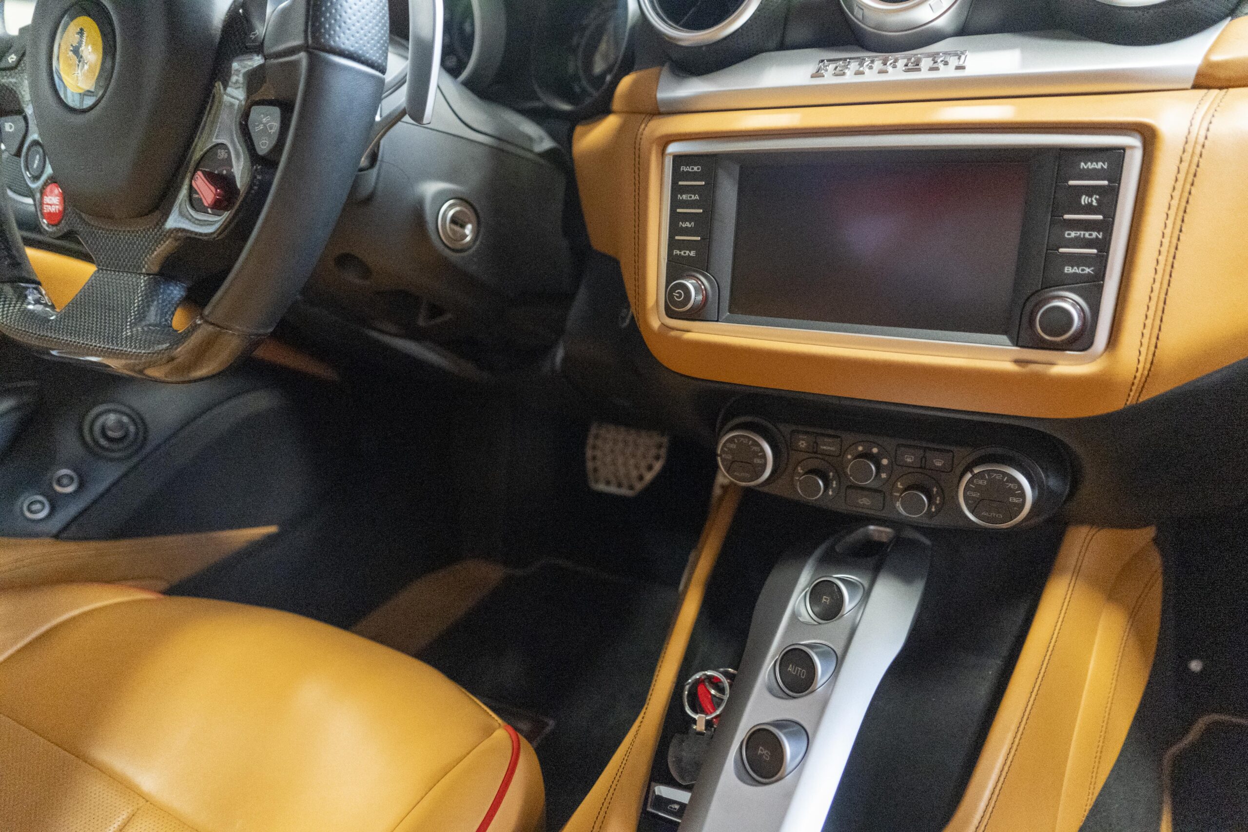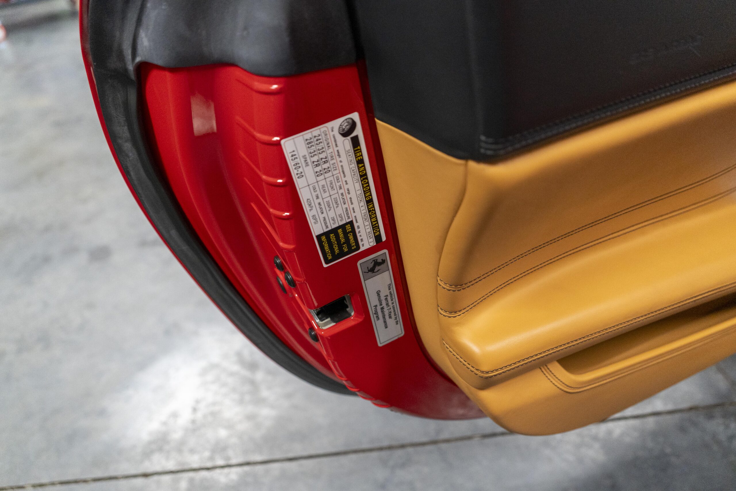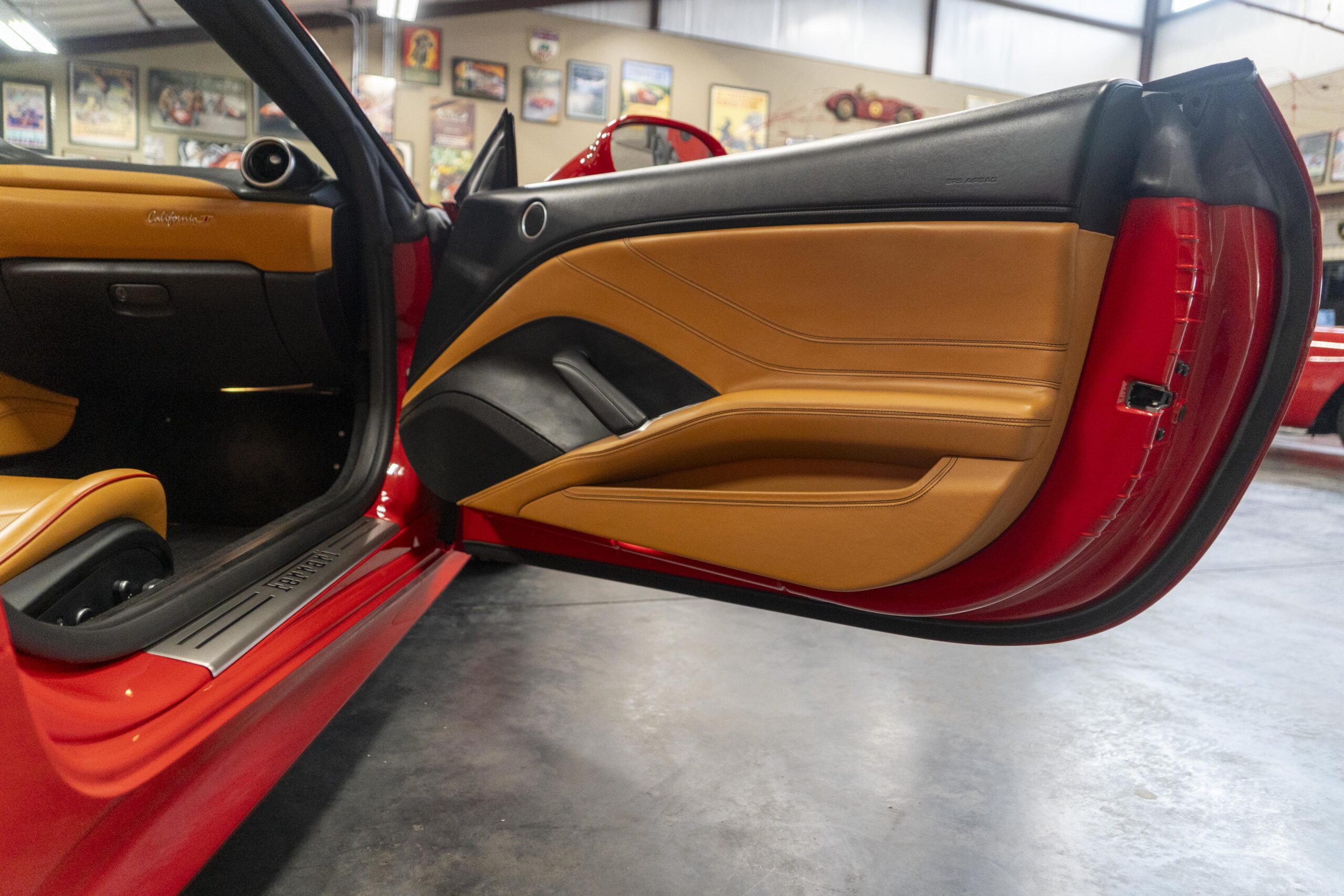 2018 California “T” s/n 228295 is heavily option and finished in Rosso Corsa DS 322 paint with Beige Tradizione 13042 leather with both Rosso 0504 and Rosso Ferrari 130421 stitching, offset with Nero 152 black carpets, still covered in their factory colored throw mats, with both the Ferrari Scuderia and California T Handling Speciale Logos. The base price was $198,973.00 plus $3,750.00 for delivery and handling. A quick walk-around shows the optional Scuderia Shields, ($1,855.00); Black Brake Calipers ($1,517.00) and 20″ Forged Diamond Rims, ($8,099.00). A peak at the interior shows options including a Beige Tradizione 13042 leather interior with Color Upon Request Stitching ($927.00) plus Colored Special Stitching ($759.00); Colored Mats with both logos ($1,349.00); a Carbon fiber steering wheel with LED lights, ($5,145.00); the Special Handling package ($7,227.00); a Backup parking Camera, ($3,712.00); dual Horses stitched on the headrests ($1,265.00); an In/Out Electric Mirror with home link ($3,036.00) and ventilated full electric seats ($7,773.00) for a total of $245,387.00 when new.