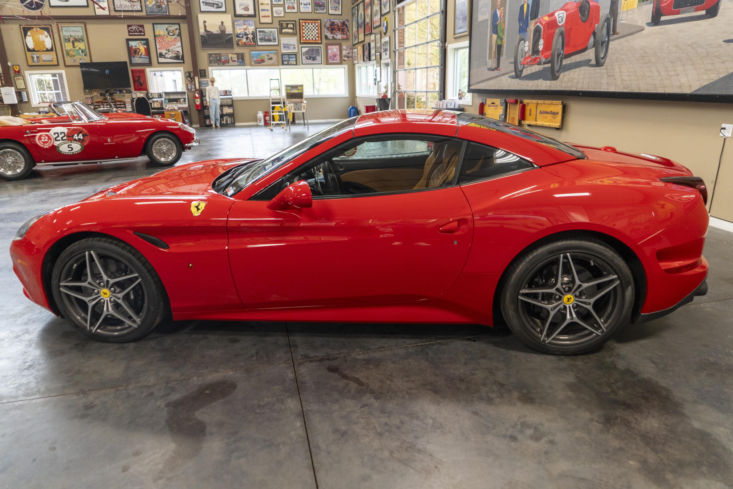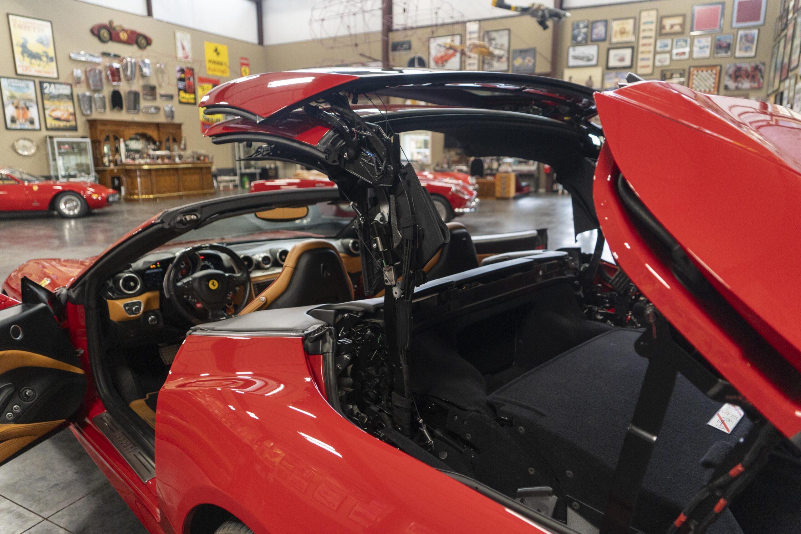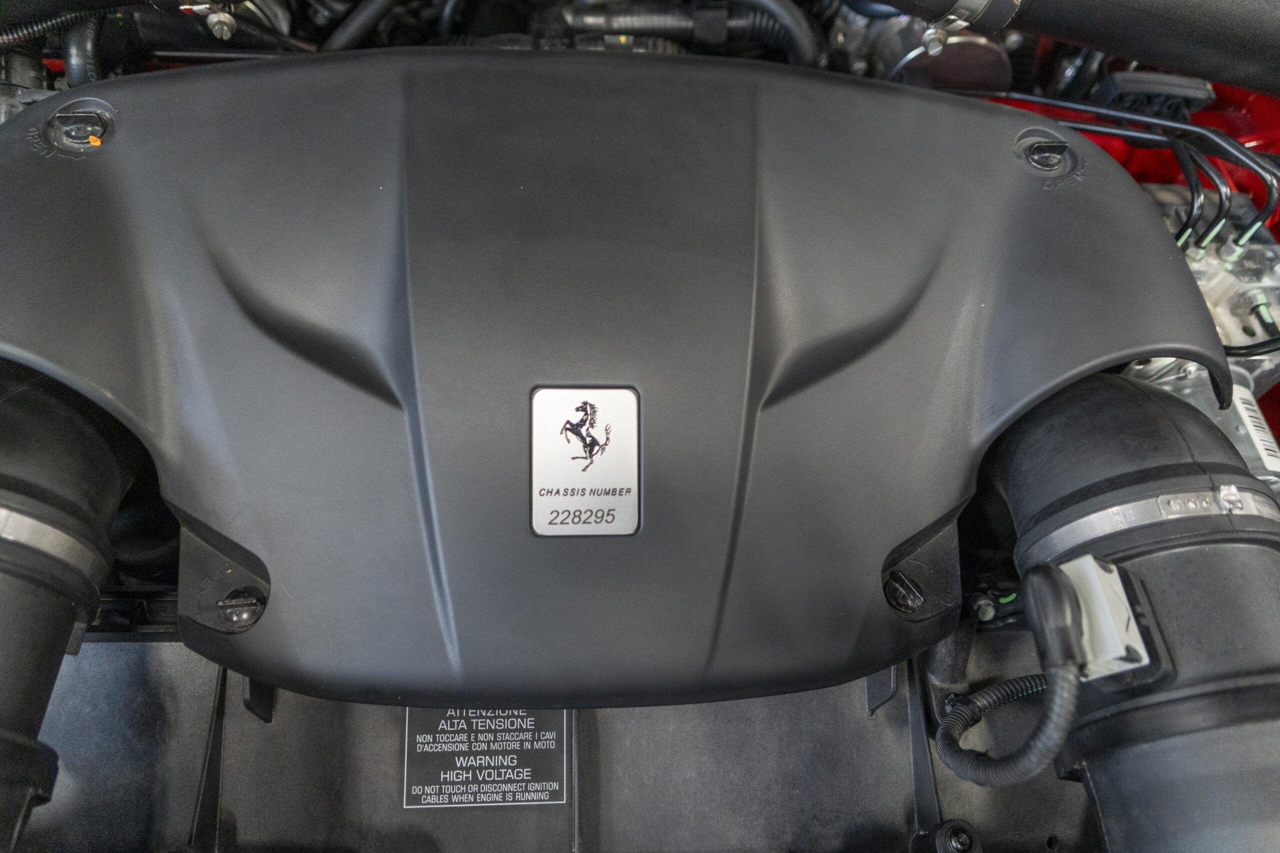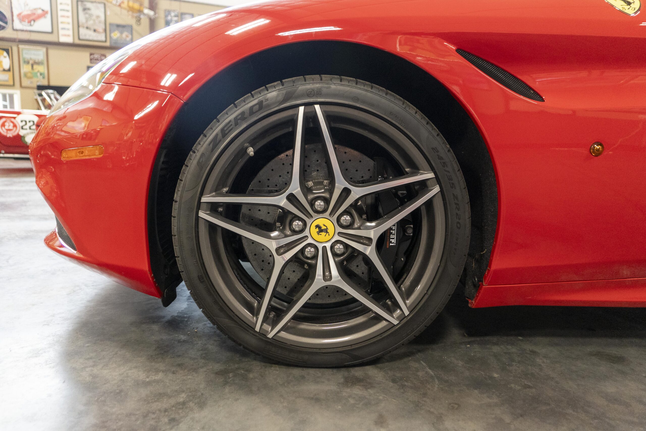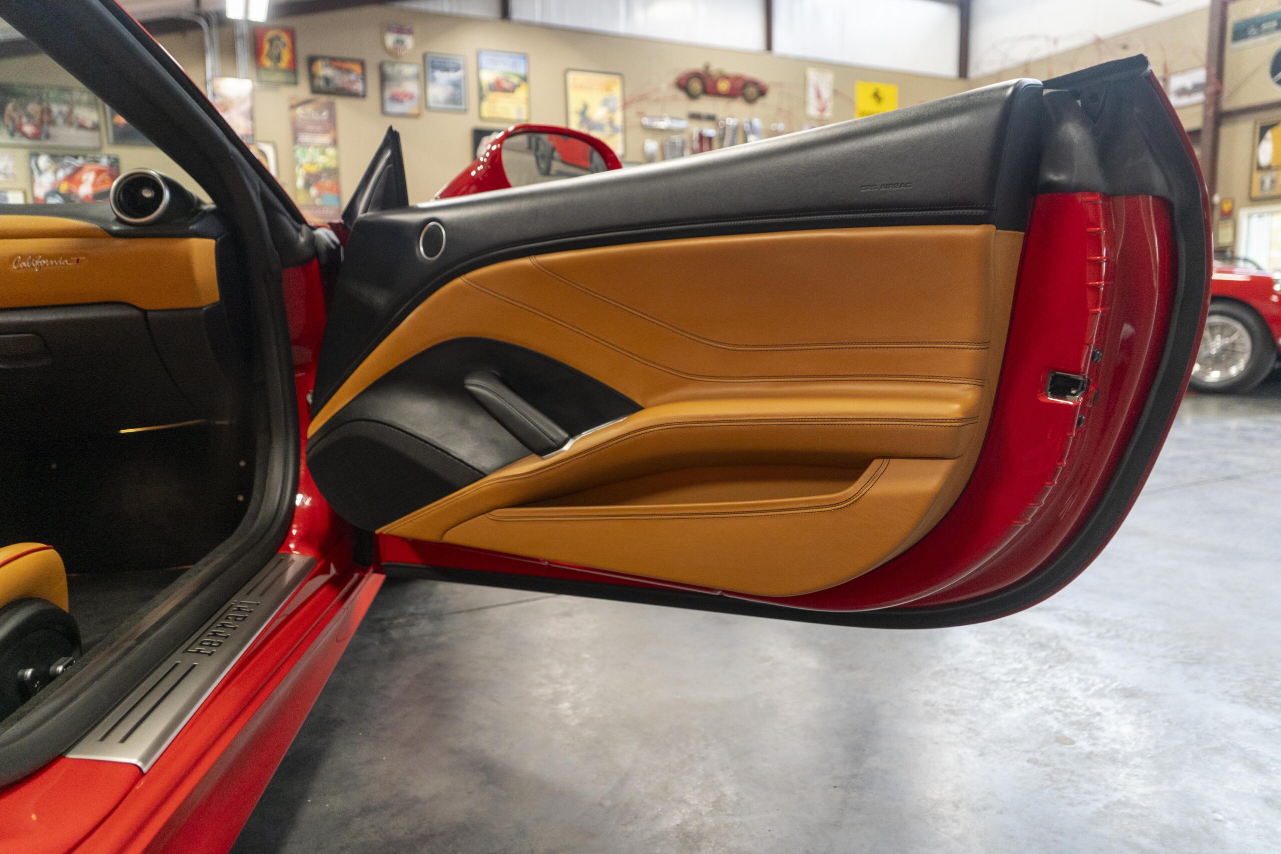 2018 California “T” s/n 228295 is heavily option and finished in Rosso Corsa DS 322 paint with Beige Tradizione 13042 leather with both Rosso 0504 and Rosso Ferrari 130421 stitching, offset with Nero 152 black carpets, still covered in their factory colored throw mats, with both the Ferrari Scuderia and California T Handling Speciale Logos. The base price was $198,973.00 plus $3,750.00 for delivery and handling. A quick walk-around shows the optional Scuderia Shields, ($1,855.00); Black Brake Calipers ($1,517.00) and 20″ Forged Diamond Rims, ($8,099.00). A peak at the interior shows options including a Beige Tradizione 13042 leather interior with Color Upon Request Stitching ($927.00) plus Colored Special Stitching ($759.00); Colored Mats with both logos ($1,349.00); a Carbon fiber steering wheel with LED lights, ($5,145.00); the Special Handling package ($7,227.00); a Backup parking Camera, ($3,712.00); dual Horses stitched on the headrests ($1,265.00); an In/Out Electric Mirror with home link ($3,036.00) and ventilated full electric seats ($7,773.00) for a total of $245,387.00 when new.