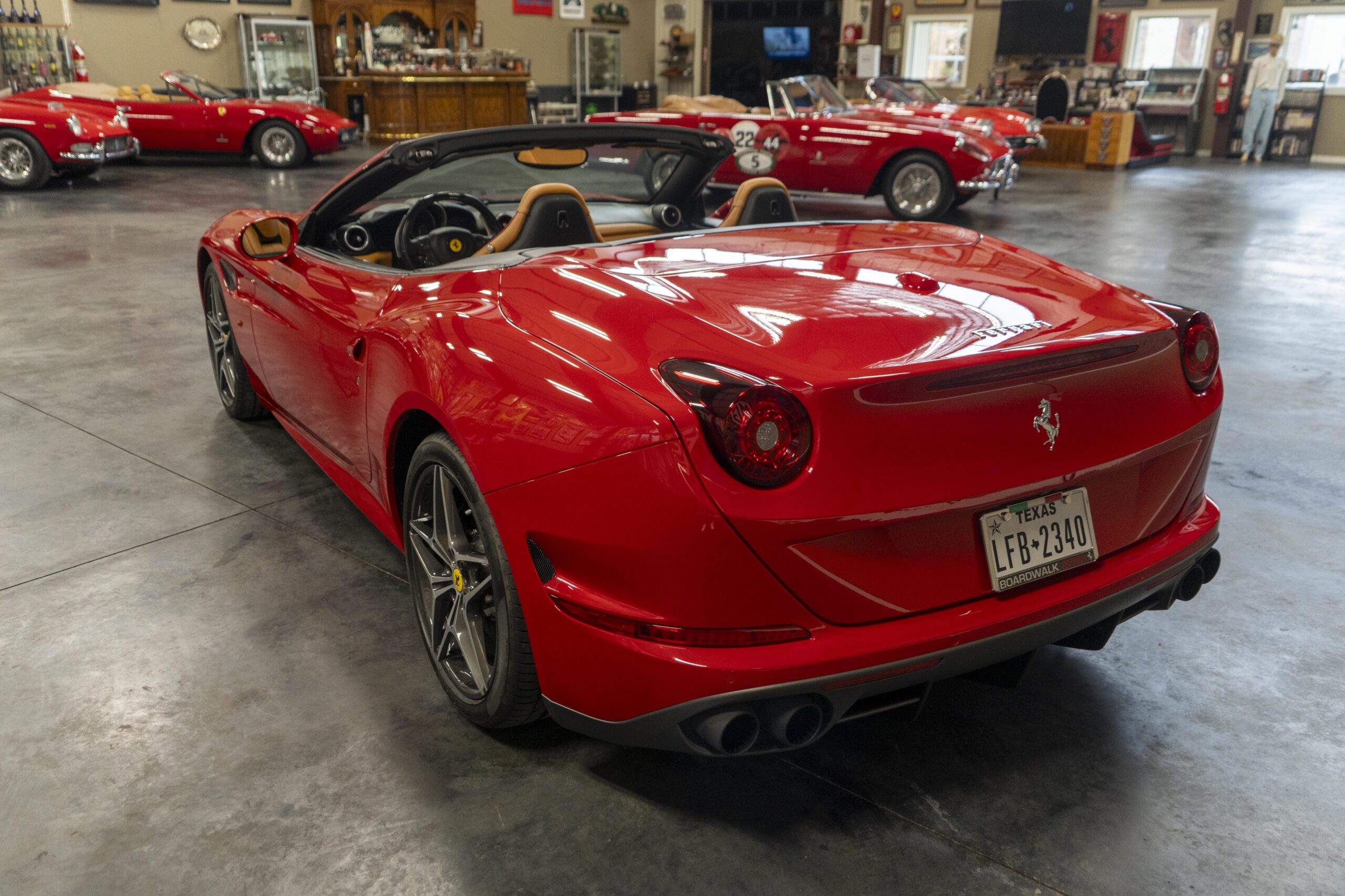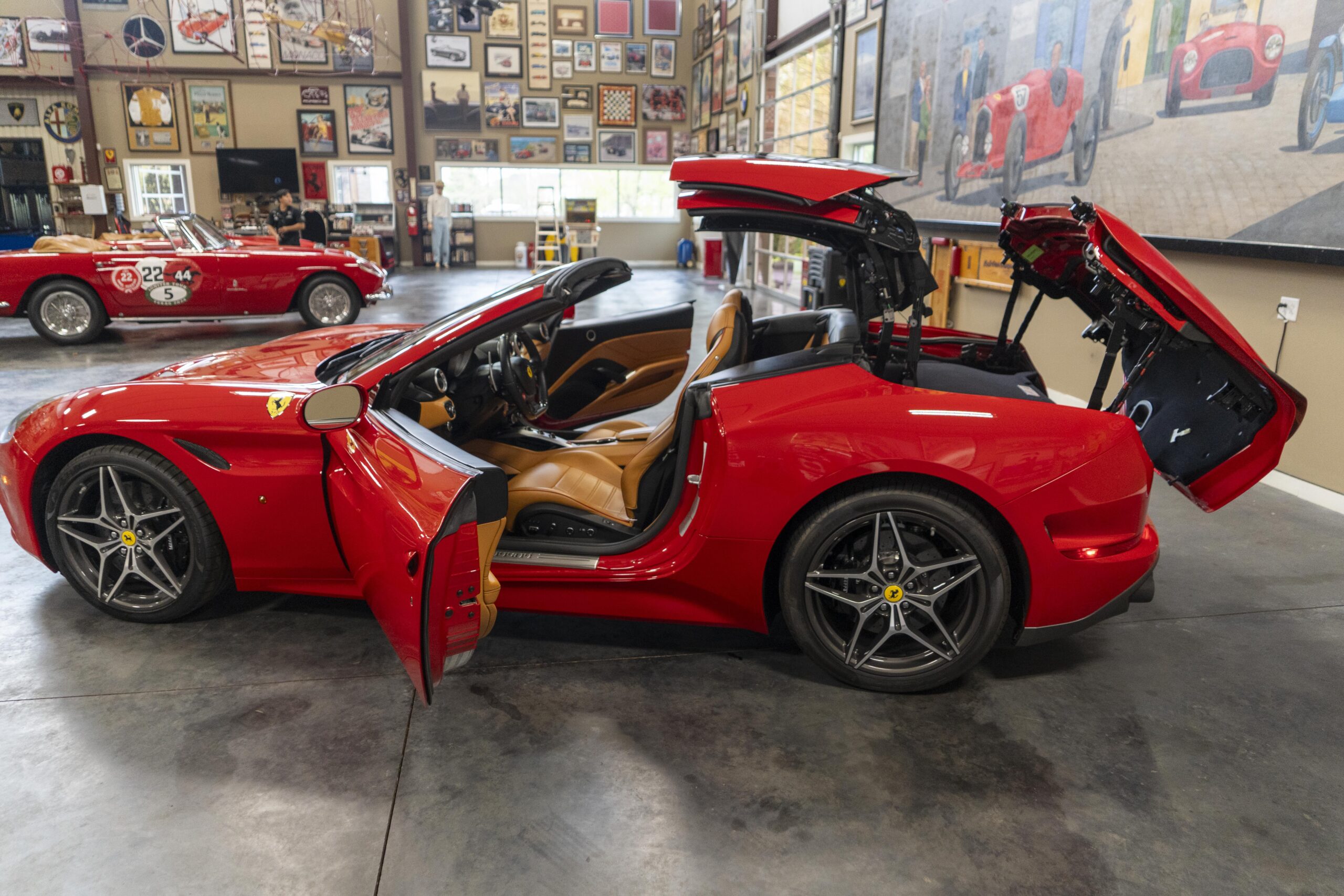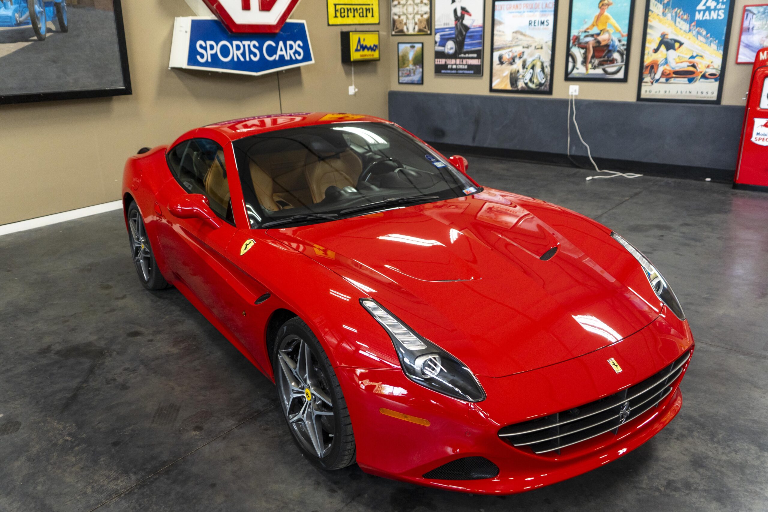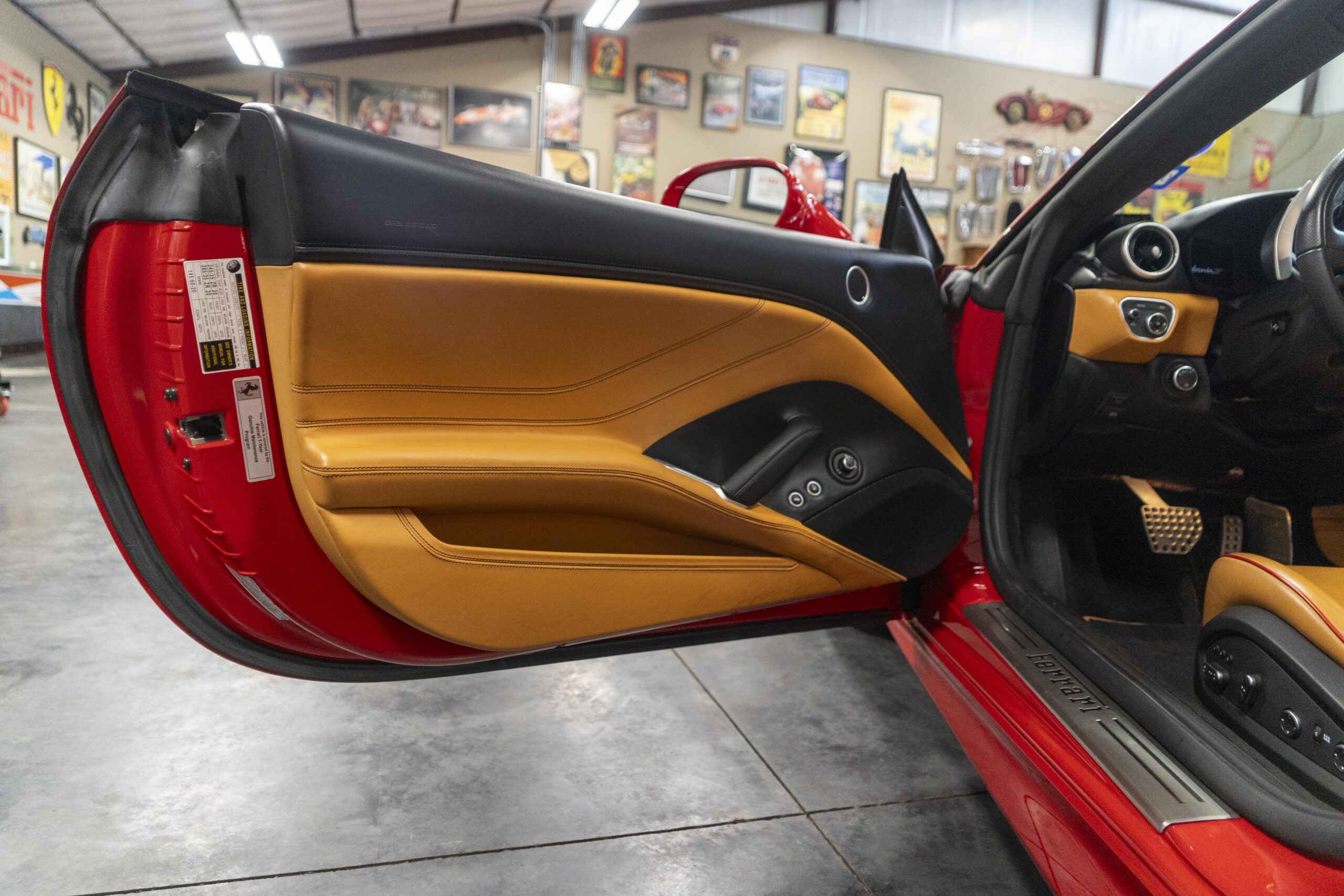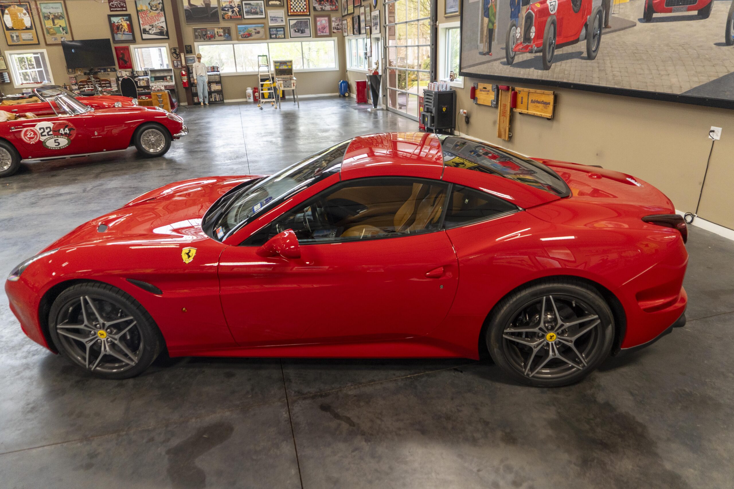 2018 California “T” s/n 228295 is heavily option and finished in Rosso Corsa DS 322 paint with Beige Tradizione 13042 leather with both Rosso 0504 and Rosso Ferrari 130421 stitching, offset with Nero 152 black carpets, still covered in their factory colored throw mats, with both the Ferrari Scuderia and California T Handling Speciale Logos. The base price was $198,973.00 plus $3,750.00 for delivery and handling. A quick walk-around shows the optional Scuderia Shields, ($1,855.00); Black Brake Calipers ($1,517.00) and 20″ Forged Diamond Rims, ($8,099.00). A peak at the interior shows options including a Beige Tradizione 13042 leather interior with Color Upon Request Stitching ($927.00) plus Colored Special Stitching ($759.00); Colored Mats with both logos ($1,349.00); a Carbon fiber steering wheel with LED lights, ($5,145.00); the Special Handling package ($7,227.00); a Backup parking Camera, ($3,712.00); dual Horses stitched on the headrests ($1,265.00); an In/Out Electric Mirror with home link ($3,036.00) and ventilated full electric seats ($7,773.00) for a total of $245,387.00 when new.