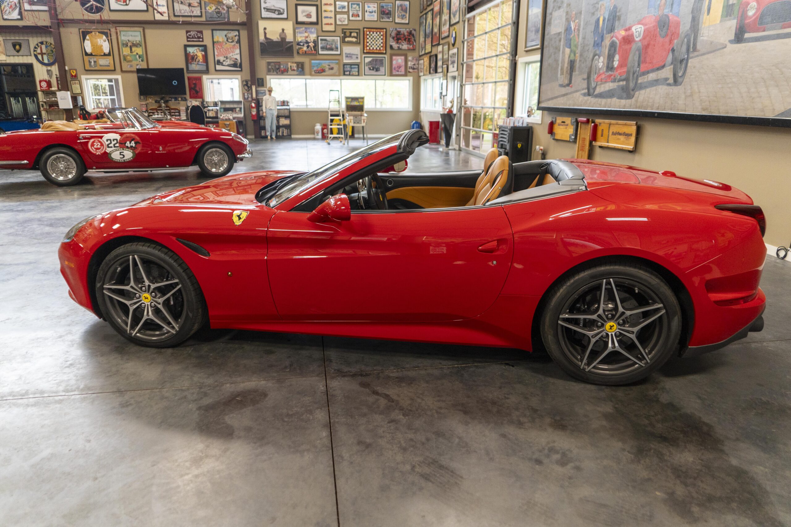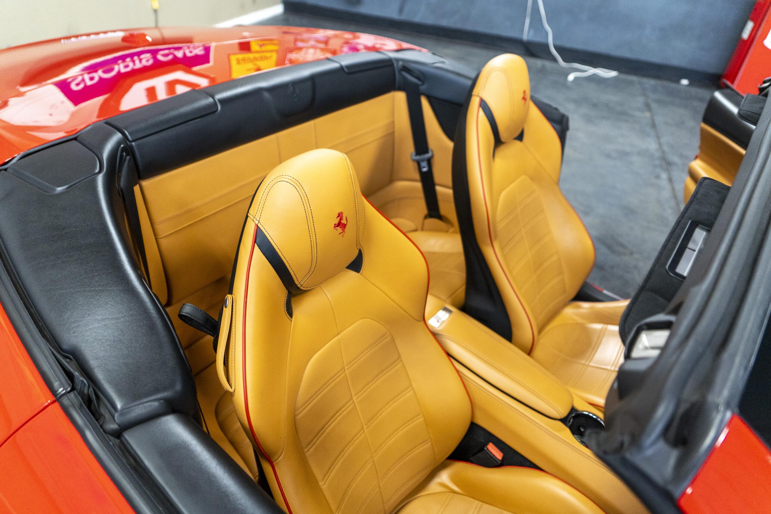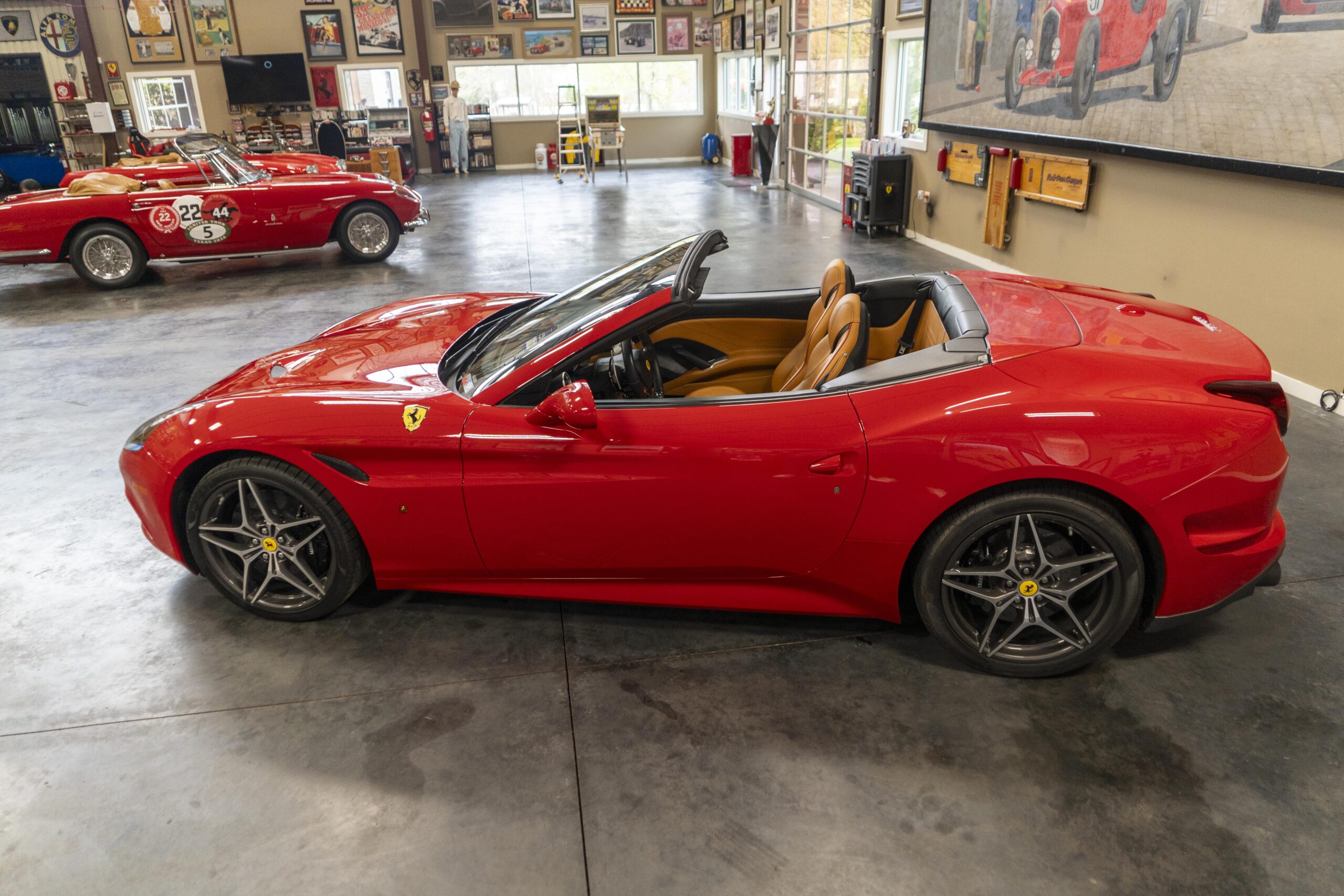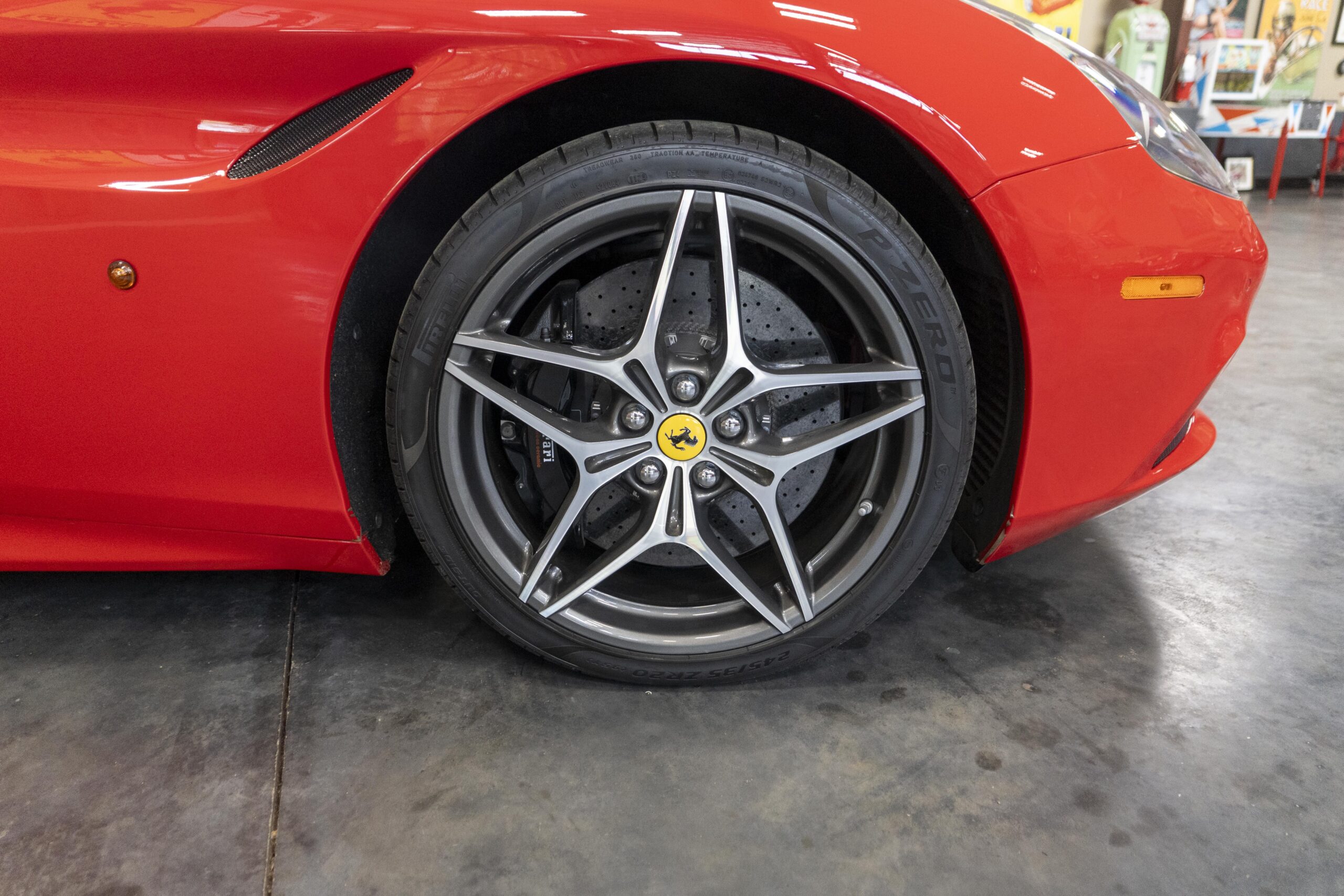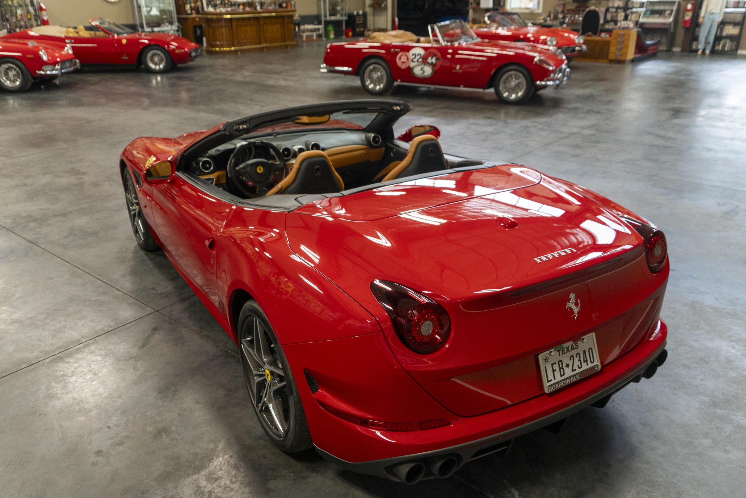 2018 California “T” s/n 228295 is heavily option and finished in Rosso Corsa DS 322 paint with Beige Tradizione 13042 leather with both Rosso 0504 and Rosso Ferrari 130421 stitching, offset with Nero 152 black carpets, still covered in their factory colored throw mats, with both the Ferrari Scuderia and California T Handling Speciale Logos. The base price was $198,973.00 plus $3,750.00 for delivery and handling. A quick walk-around shows the optional Scuderia Shields, ($1,855.00); Black Brake Calipers ($1,517.00) and 20″ Forged Diamond Rims, ($8,099.00). A peak at the interior shows options including a Beige Tradizione 13042 leather interior with Color Upon Request Stitching ($927.00) plus Colored Special Stitching ($759.00); Colored Mats with both logos ($1,349.00); a Carbon fiber steering wheel with LED lights, ($5,145.00); the Special Handling package ($7,227.00); a Backup parking Camera, ($3,712.00); dual Horses stitched on the headrests ($1,265.00); an In/Out Electric Mirror with home link ($3,036.00) and ventilated full electric seats ($7,773.00) for a total of $245,387.00 when new.