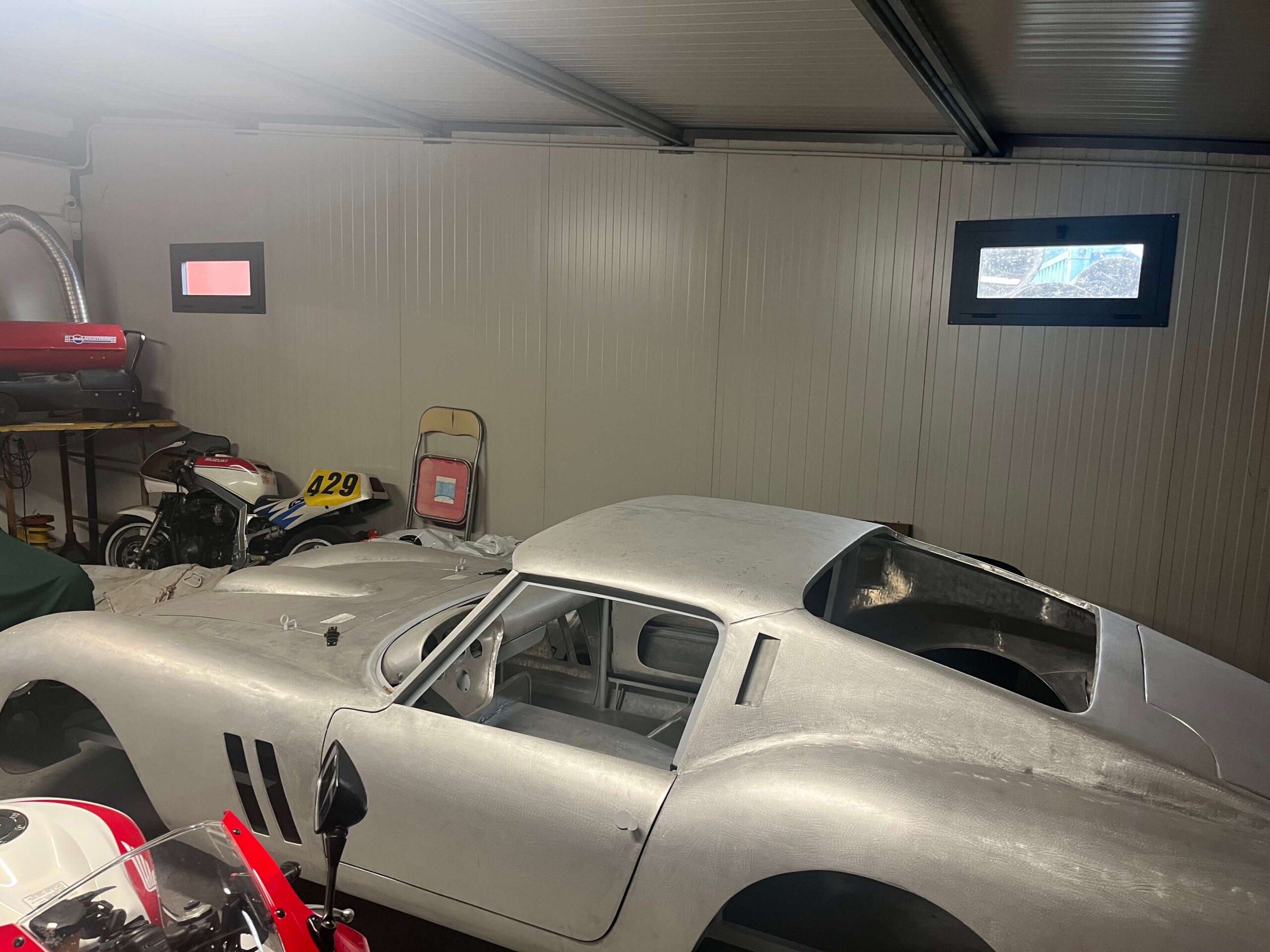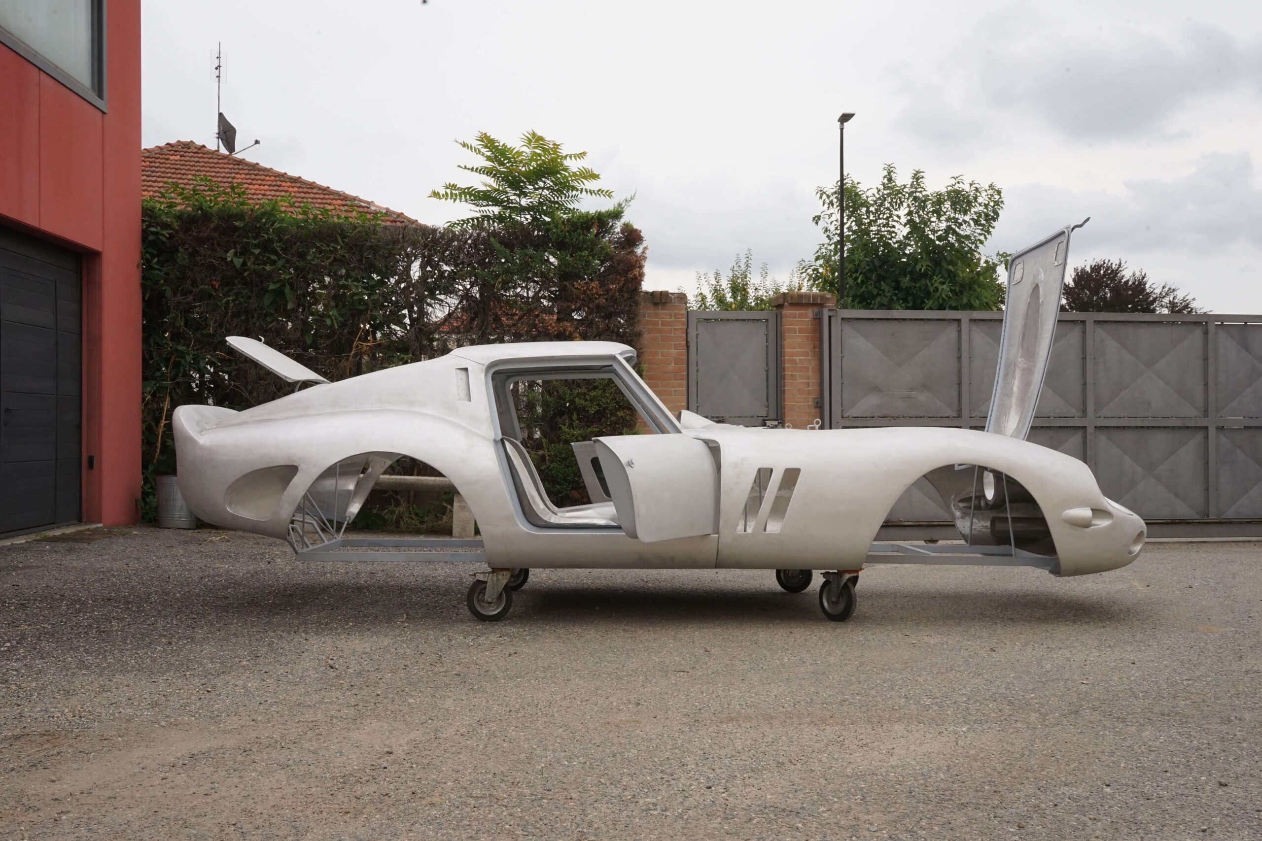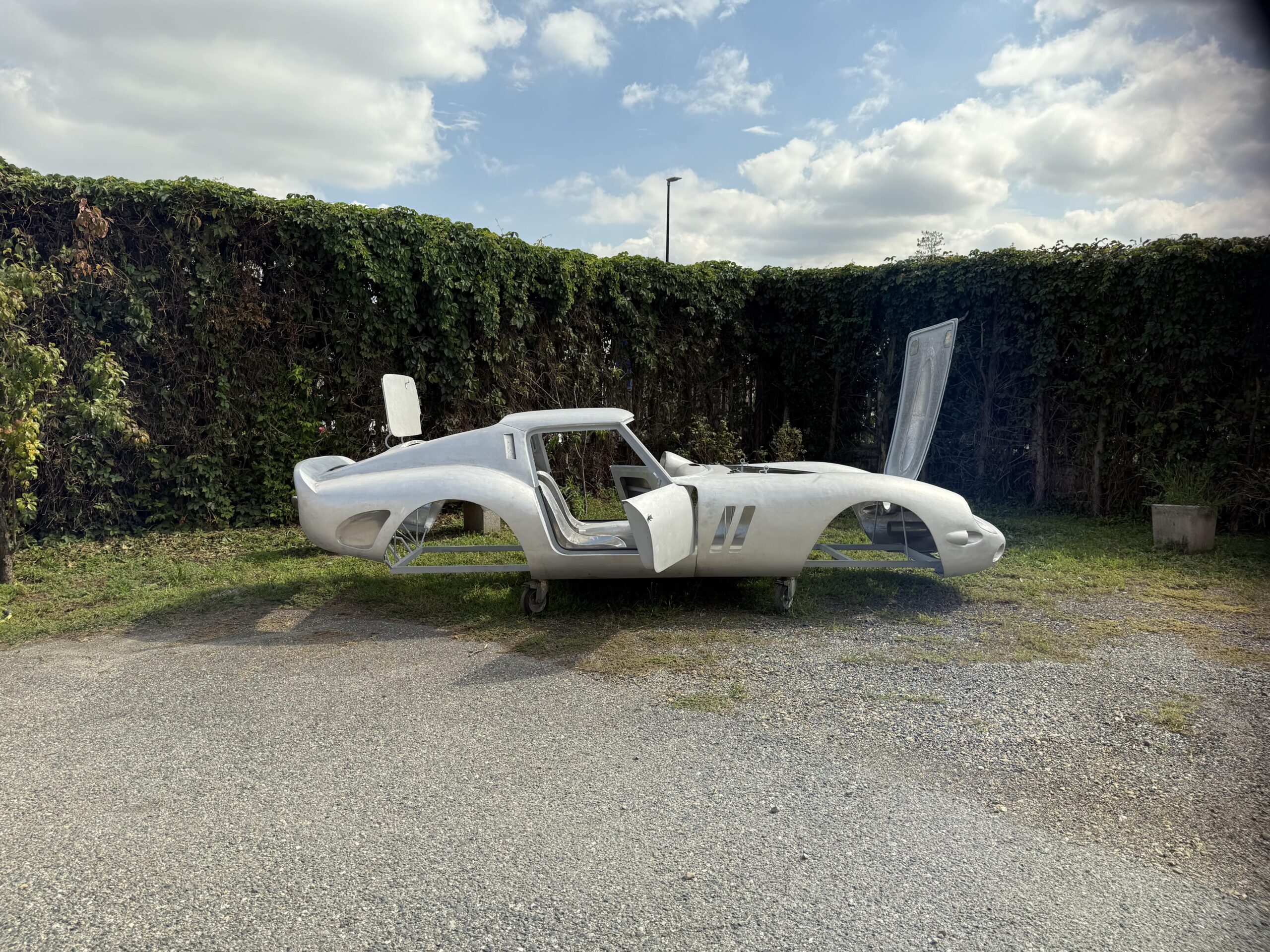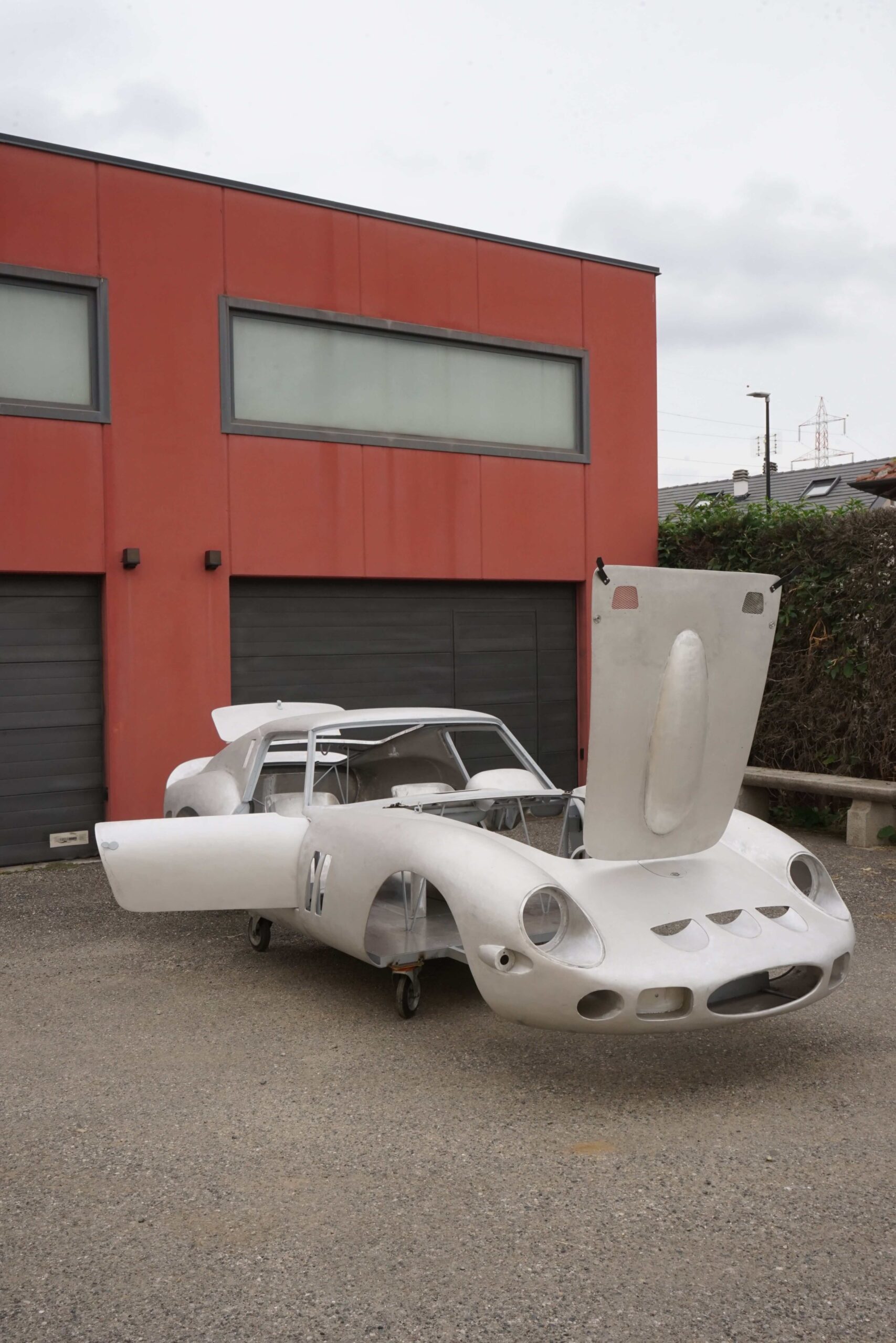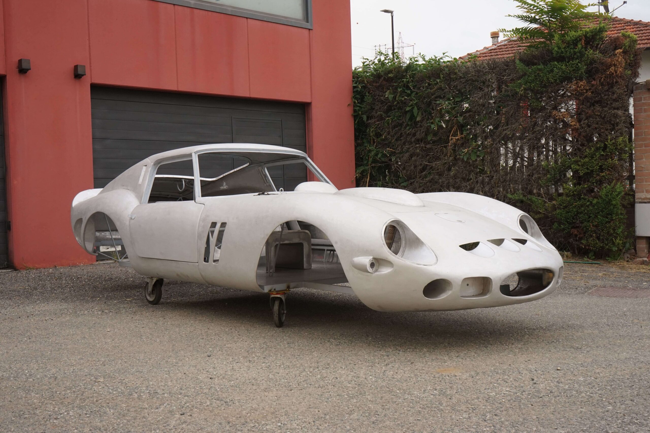 The body is currently in storage with the owner in Italy and this 250 GTO Series I body by Allegretti project can be finished to your request by very qualified shops in Italy. We have access to several possible donor cars and frames, at extra cost, including from a 250 GT 2+2 or a 330 2+2. We also have access to several engine and gearbox combinations, including a period-correct 250 engine and gearbox; or a 330 engine and gearbox, plus newer modern frames and power trains such as from a 456 GT or a 550 Maranello, again, at extra cost.