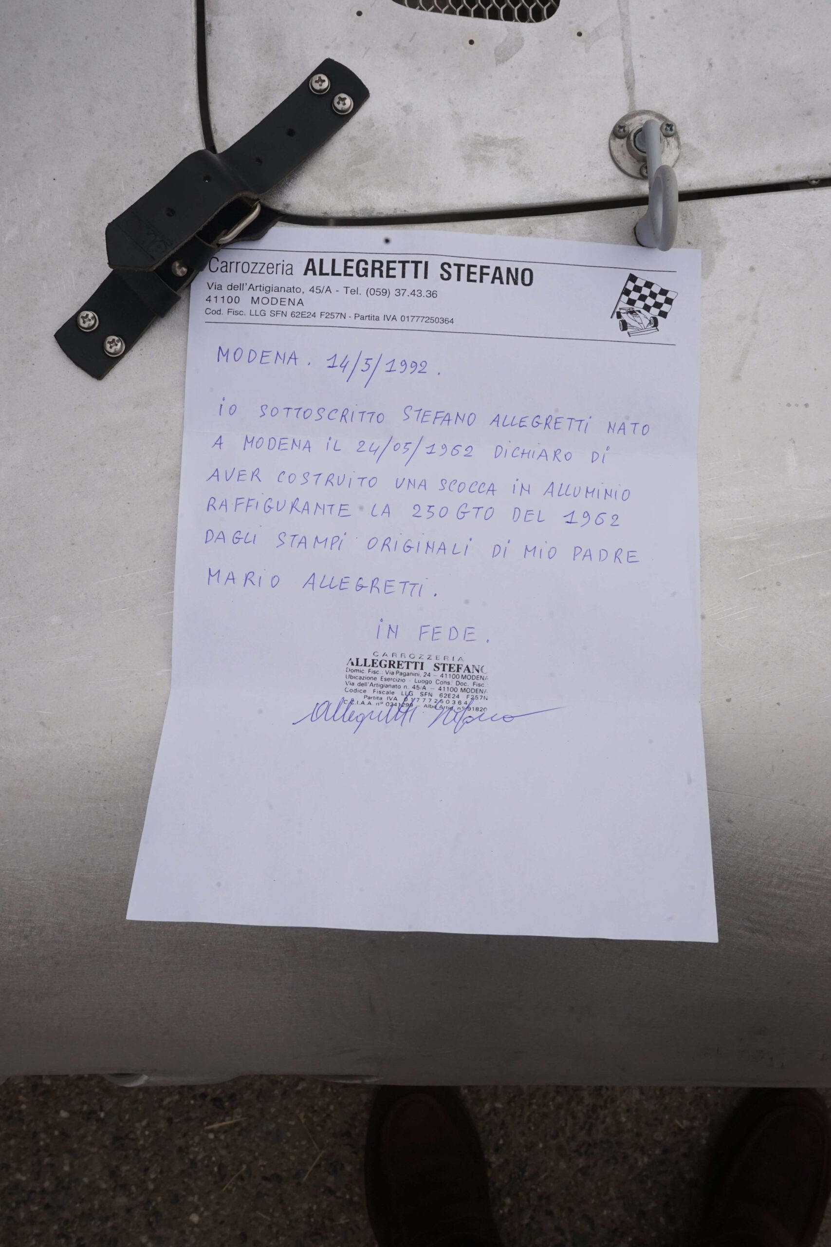If you’re looking for a ready-to-go 250 GTO Series I body built by Allegretti to the highest standards to complete to your specification; we can supply the car of your dreams, thanks to our decades of experience and our extensive database and contacts. This alloy 250 GTO Series I body body is in storage in Italy, seriously for sale and priced to sell at $195,500 or best offer in the next thirty days